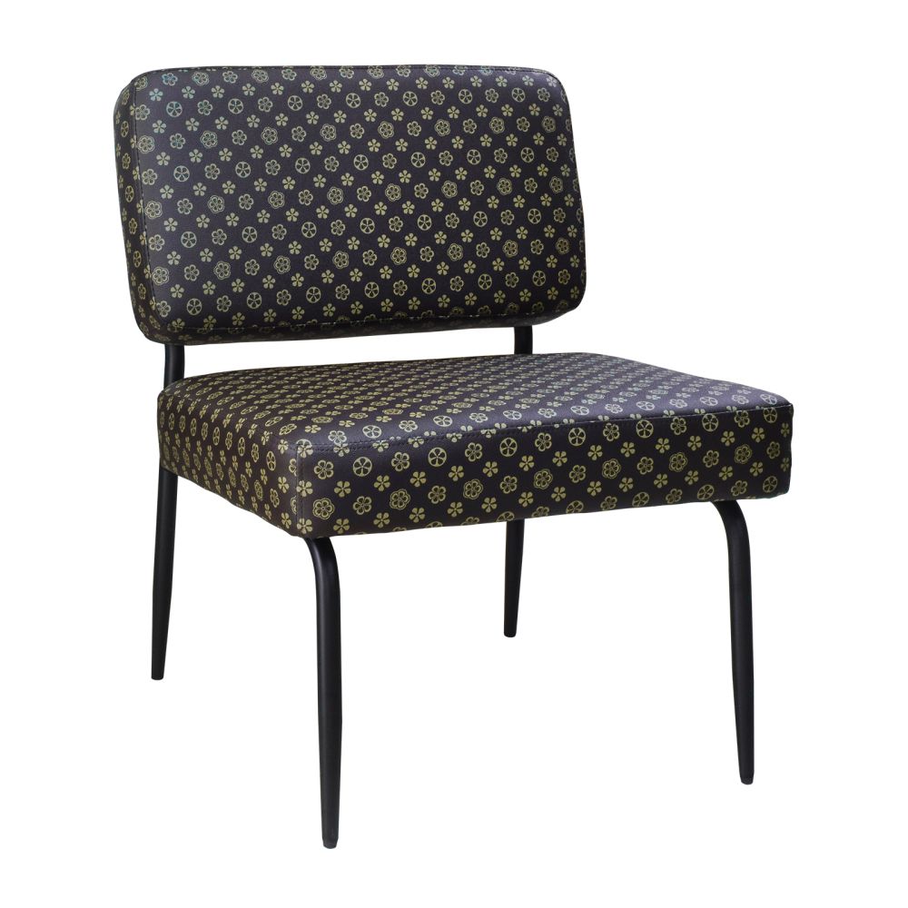 Elegante y cómodo sillón individual ocasional para estancias pequeñas, terrazas techadas, salas, lobby, etc. Fabricado en base metalica tubular con colchonetas de asiento y respaldo en forro vinipiel color cafe con estampado. Crea o renueva tus ambientes con este sillón que combina con cualquier lugar. Puede resistir un peso de 150 Kg.
