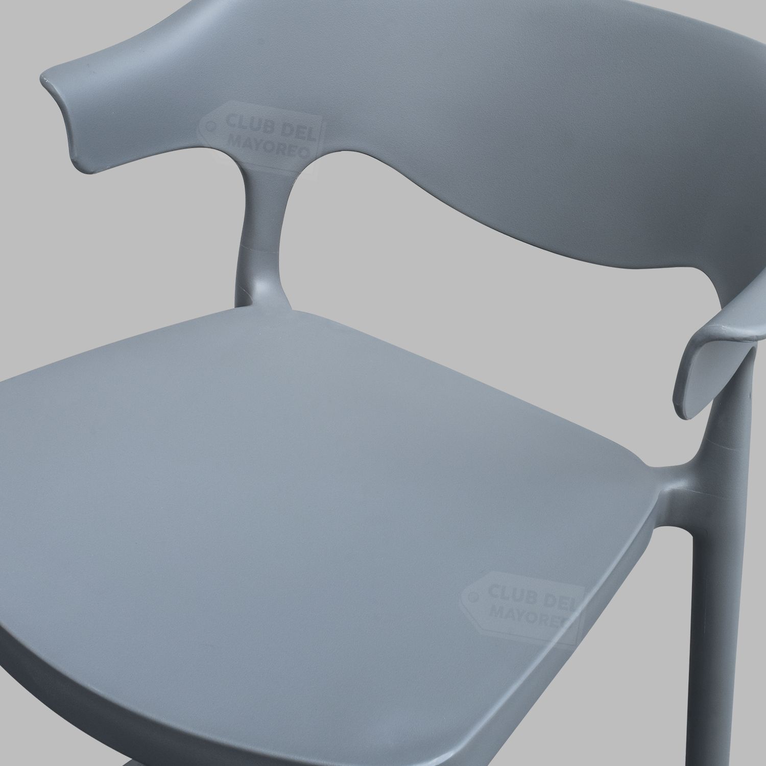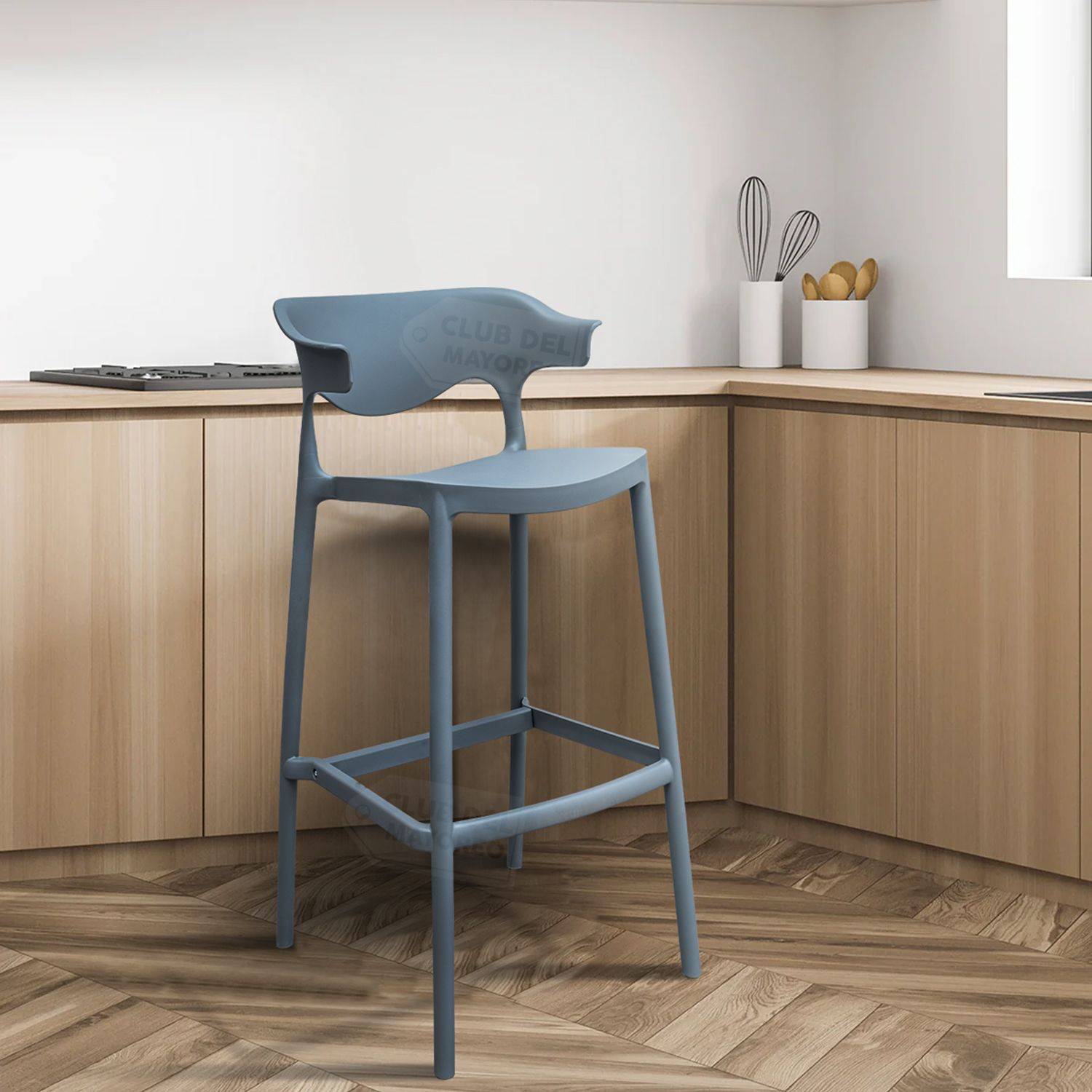 Banco alto para barra, bar, restaurante, comidas, etc. Estilo moderno minimalista color gris y asiento con respaldo moldeado curvo para mayor comodidad. Estructura en polimero resistente a golpes, caidas, etc, puede soportar un peso de hasta 100 kg.