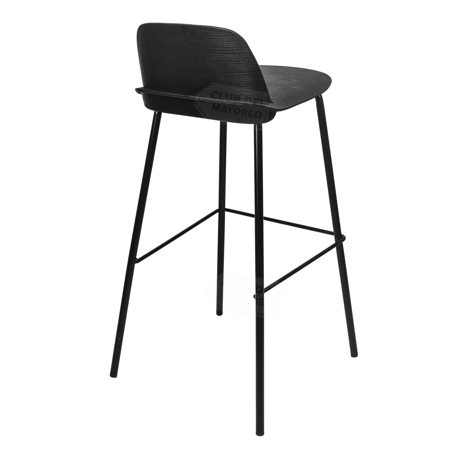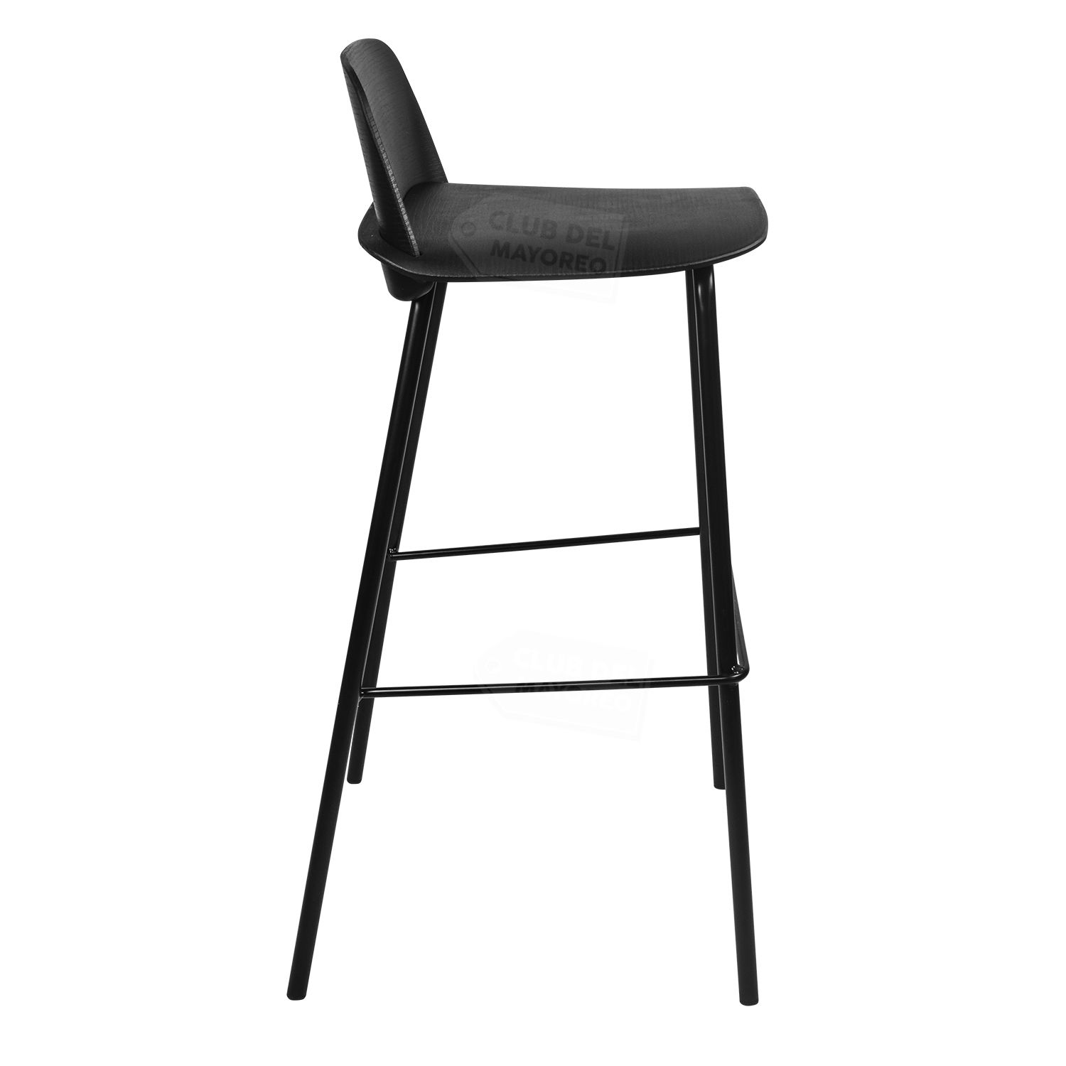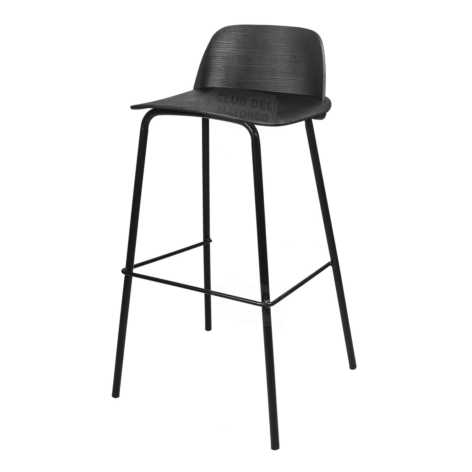 Banco alto para barra, bar, restaurante, comidas, etc. Estilo moderno minimalista color negro y asiento con respaldo moldeado curvo para mayor comodidad. Estructura metalica color negro, resistente que puede soportar un peso de hasta 100 kg.