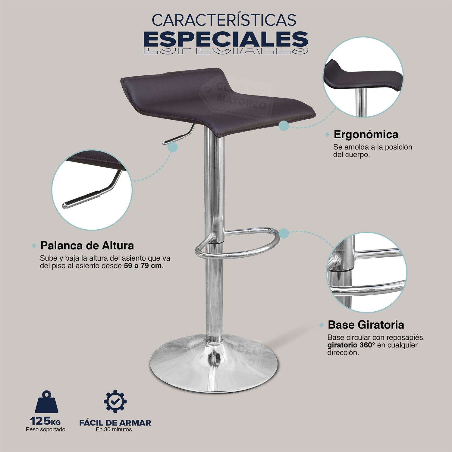 Cuenta con una estructura metálica resistente que brinda estabilidad y durabilidad, además de descansapiés integrado para mayor comodidad. El vinipiel es fácil de limpiar y mantener, perfecto para uso diario en el hogar o en espacios comerciales.