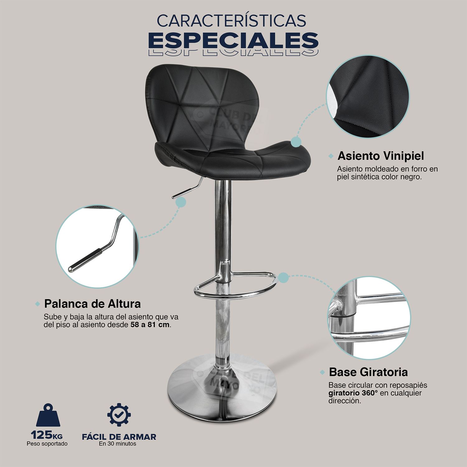 Con altura ajustable de 89 a 110 cm, este banco ofrece comodidad y versatilidad, adaptándose a diferentes superficies y necesidades, desde un desayuno rápido hasta reuniones con amigos o familia.