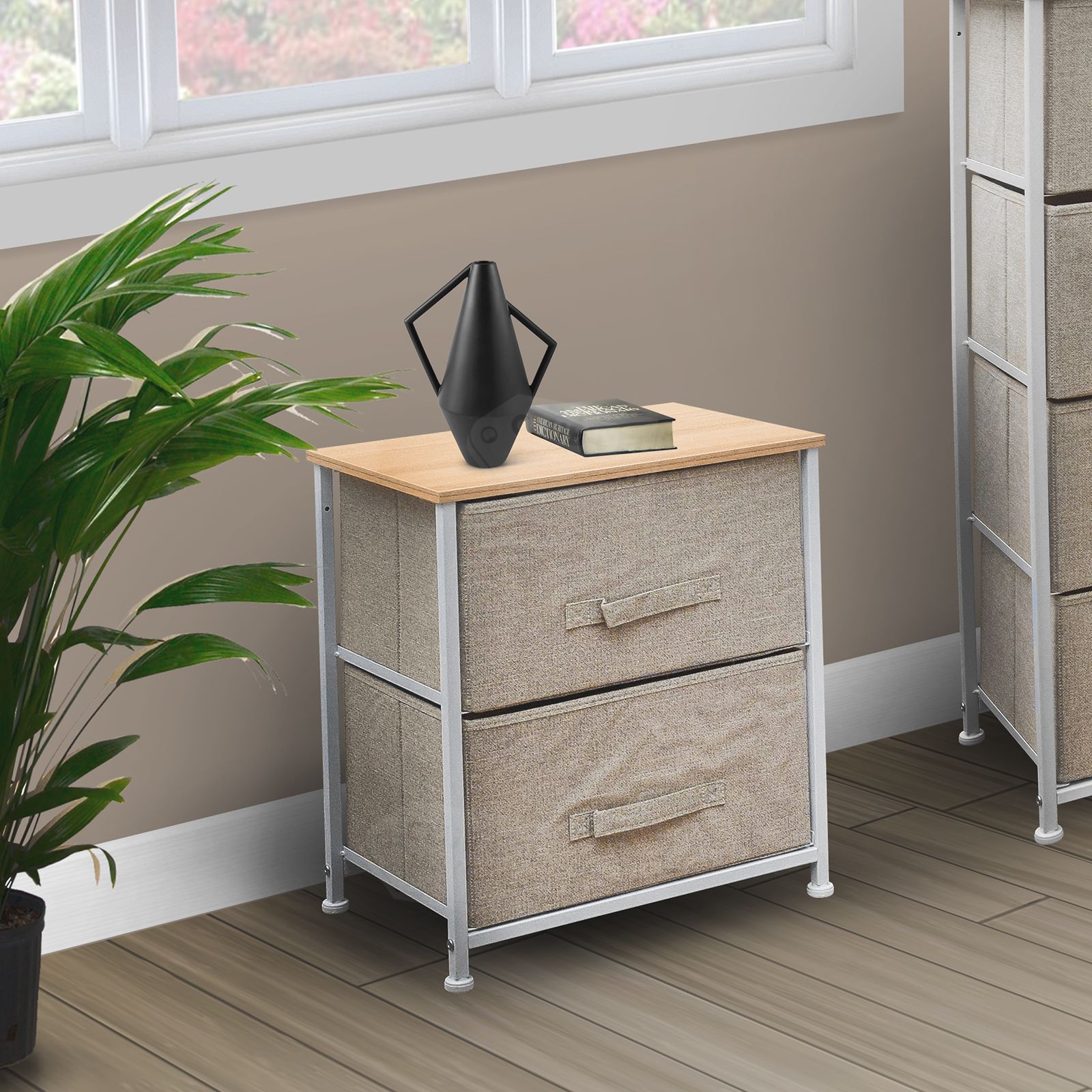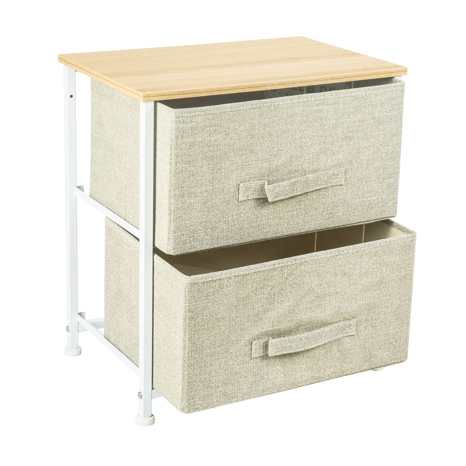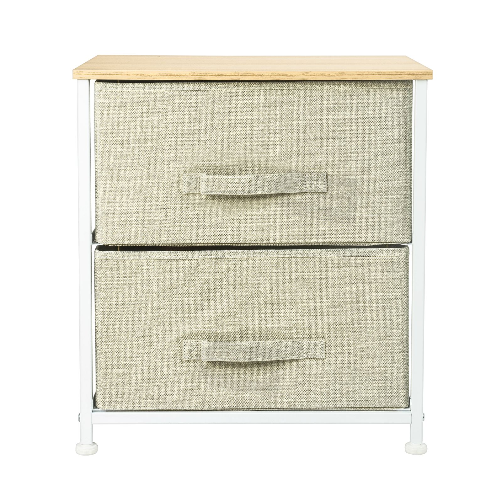 Moderno y sencillo buro de la coleccion Paris con dos cajones en tela de lino color beige, interior con tapas en MDF y tela no tejida color beige. Fabricado con estructura metálica resistente y repisa superior en madera industrializada con melamina tipo madera natural. Idea para combinar con cualquier ambiente de tu recámara. Puede soportar hasta 30 kg en la repisa y entre 8 y 10 Kg en cada cajon. Fácil de armar en solo 20 minutos.