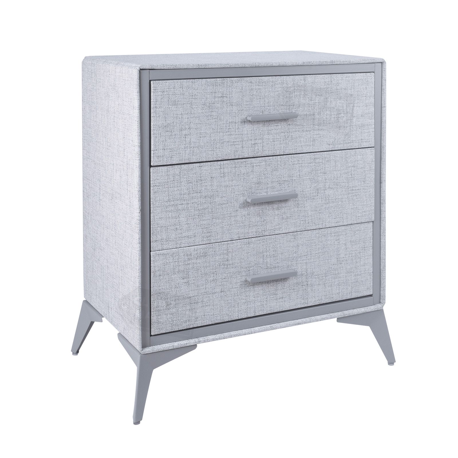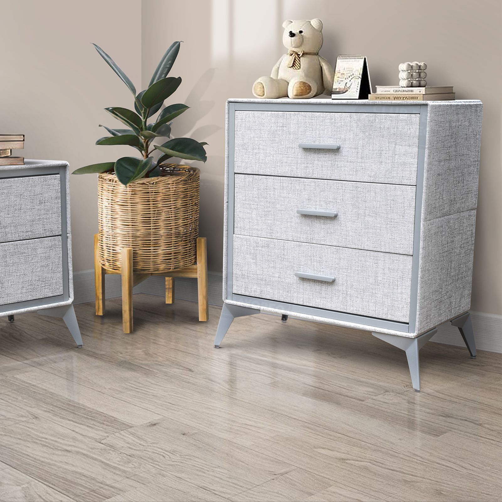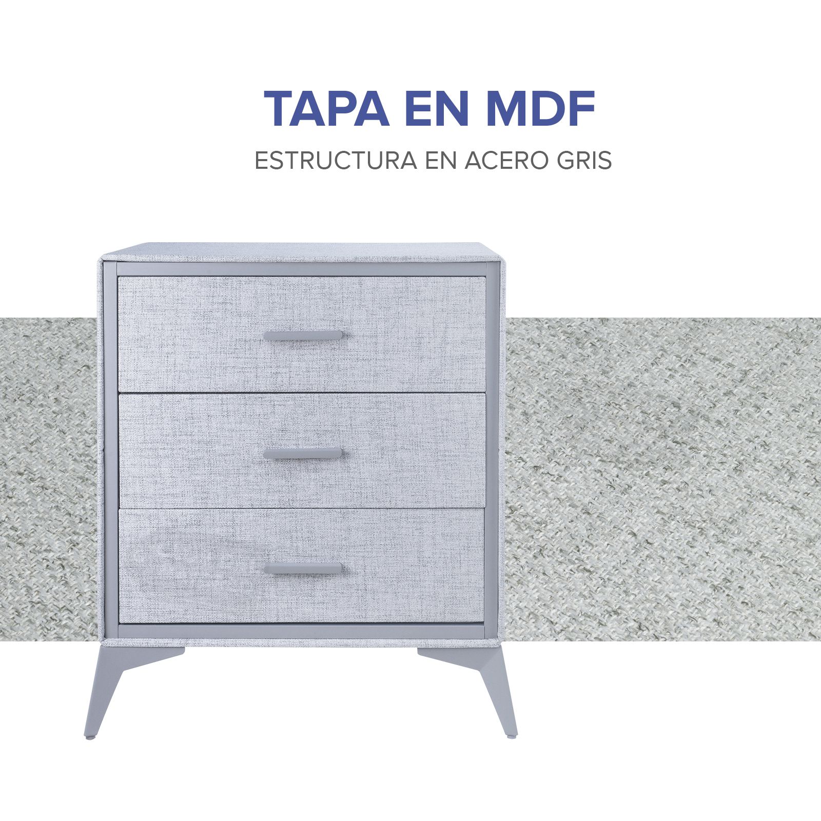 Cajonera con 3 Cajones Colección Roma Estructura Metálica y Forro en tela de lino gris marca Calandria