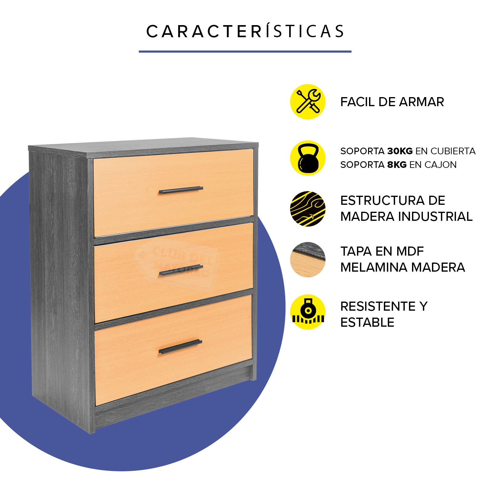 Cajonera Vertical con 3 Cajones Colección Oslo Estructura Madera Industrializada marca Calandria