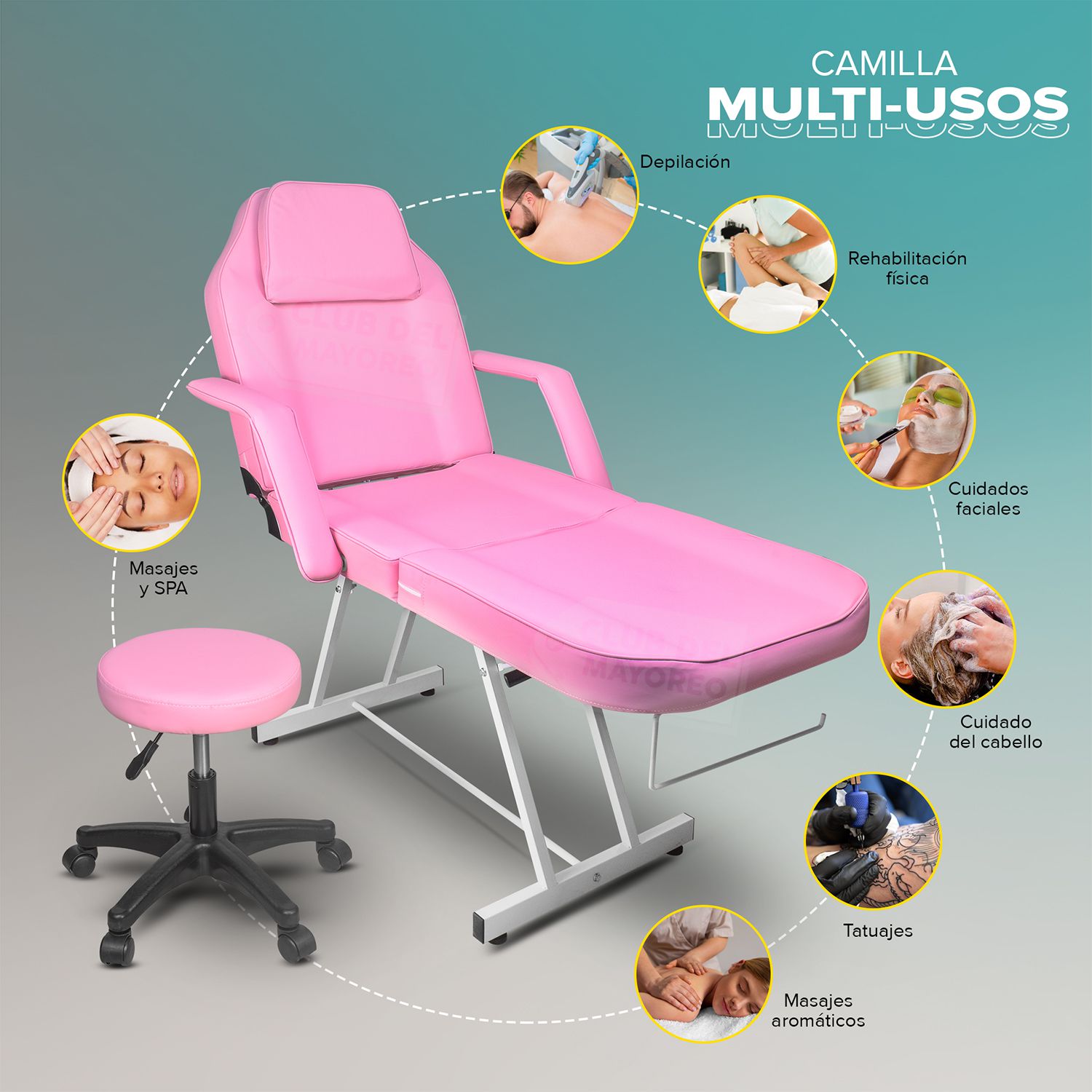 Kit de Cama Reclinable y Silla Rosa para Faciales Spa Tatto