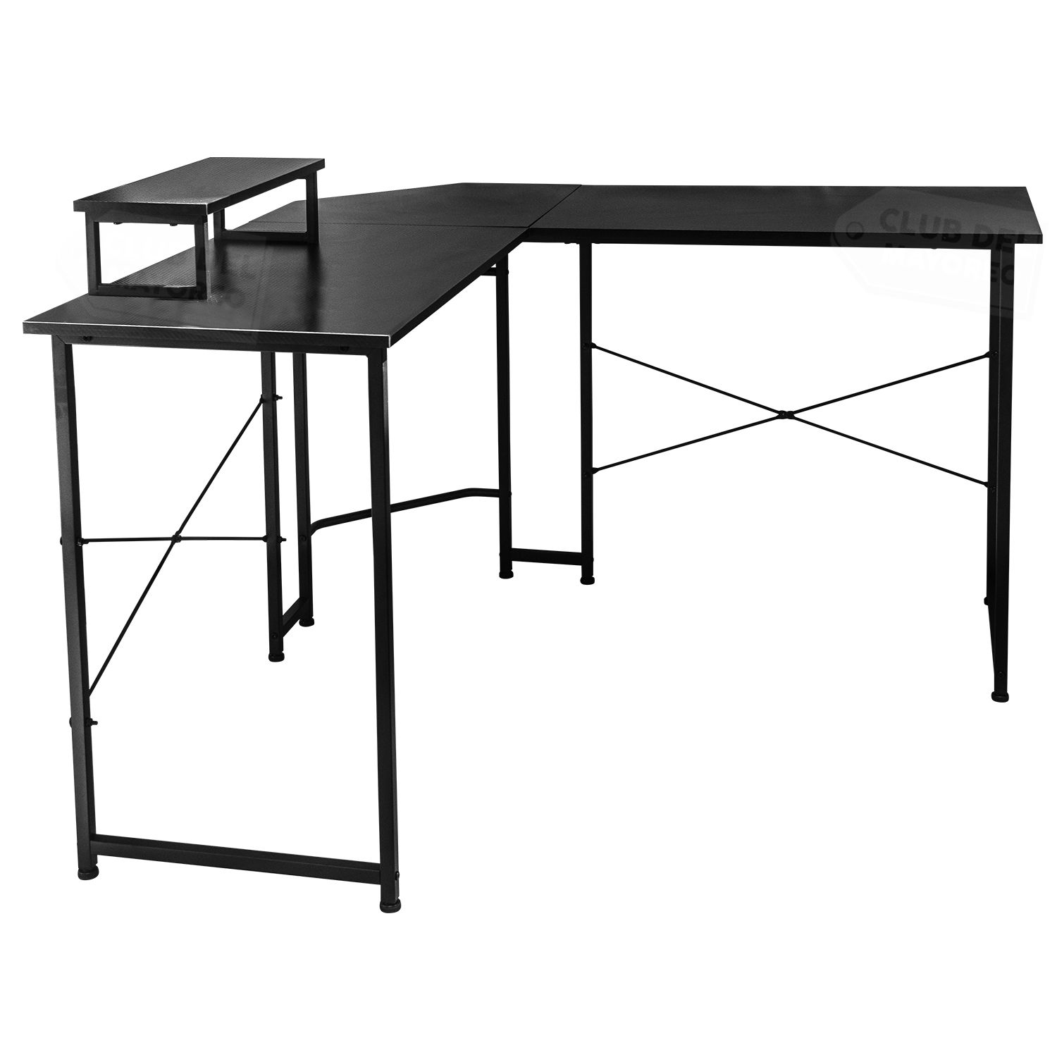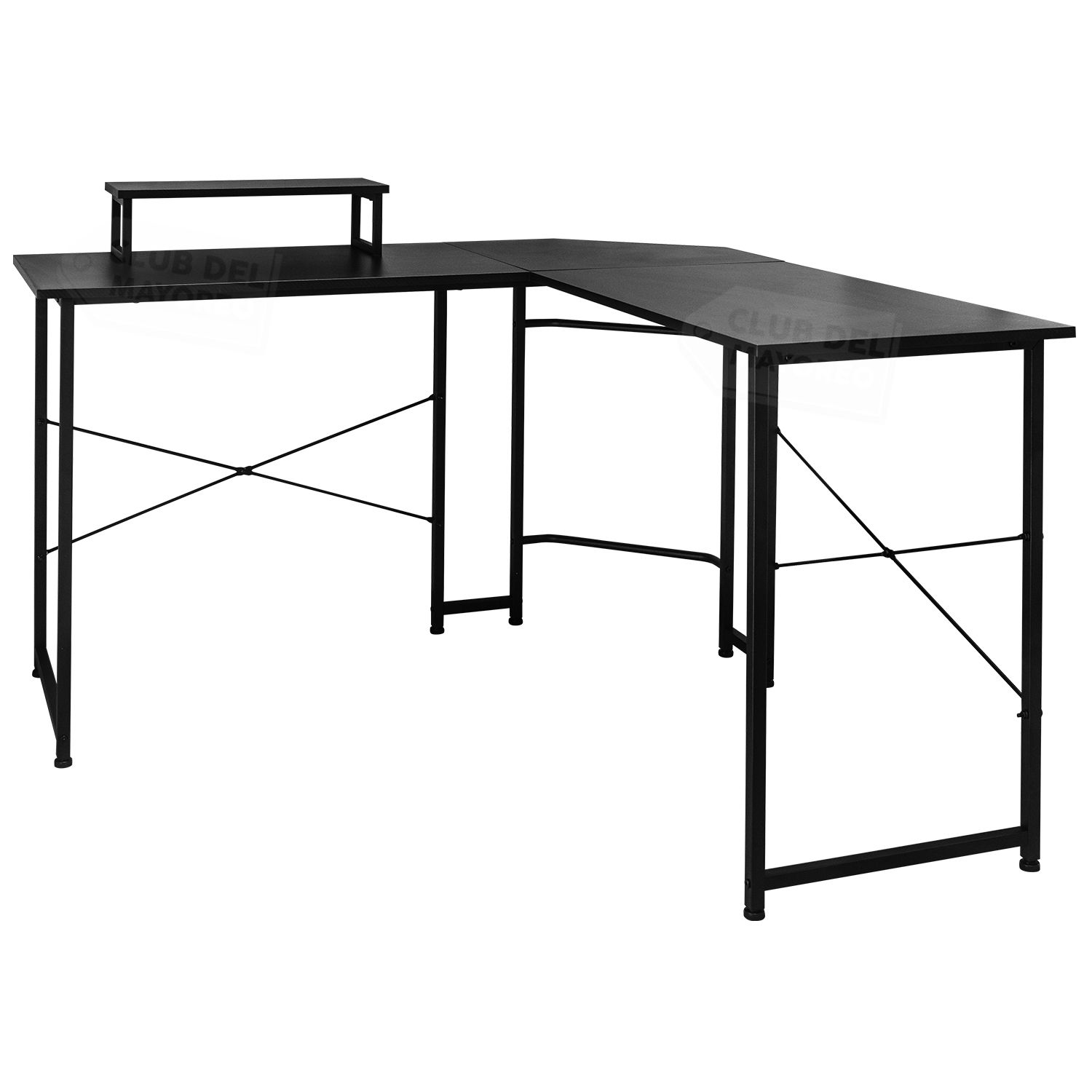 Escritorio en forma de escuadra de diseño moderno, ideal para aprovechar al máximo el espacio en oficinas, estudios o home office. Su acabado en color negro le da un estilo elegante y contemporáneo, fácil de combinar con distintos ambientes.