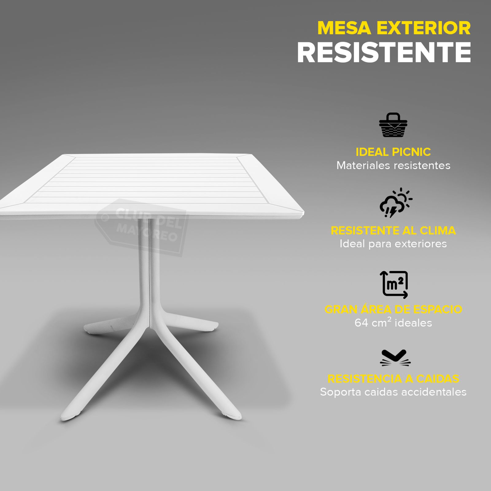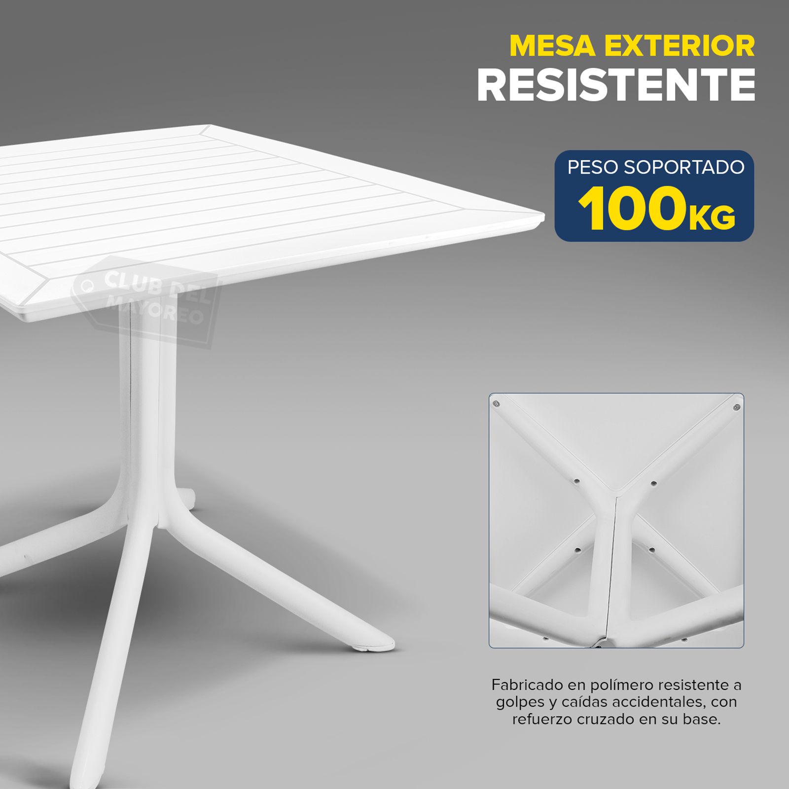 La Mesa de Plástico 80 x 80 cm Blanca es la opción perfecta para quienes buscan una mesa resistente, fácil de mantener y de diseño elegante. Fabricada con plástico de alta calidad, esta mesa es ideal tanto para interiores como para exteriores. Su tamaño compacto la convierte en una opción práctica para jardines, terrazas, patios o como mesa auxiliar en reuniones y eventos.