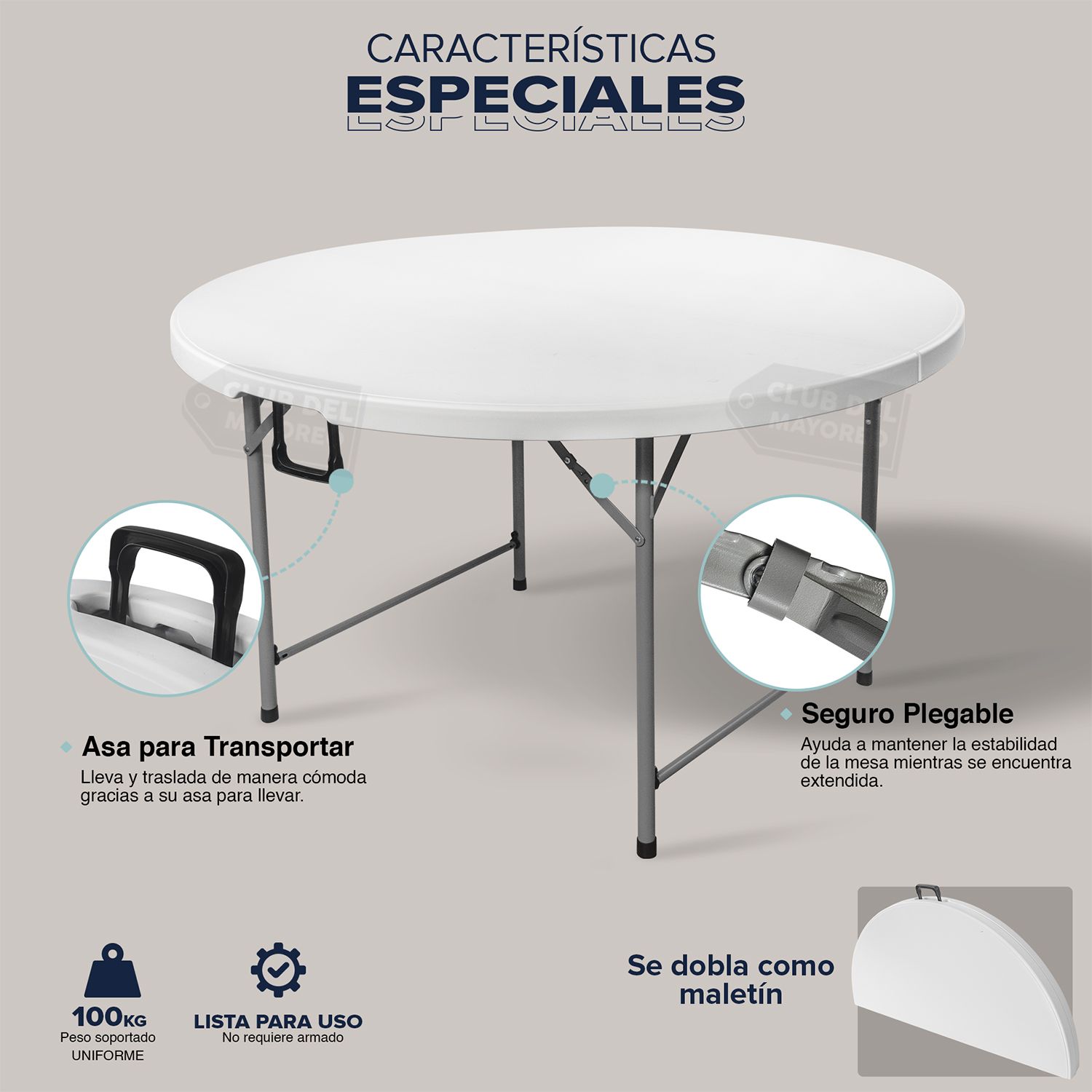 Mesa redonda de 122 cm de diámetro, ideal para eventos, reuniones, comedores y espacios comerciales. Su diseño circular facilita la convivencia y el aprovechamiento del espacio, permitiendo una mejor distribución de los asistentes.