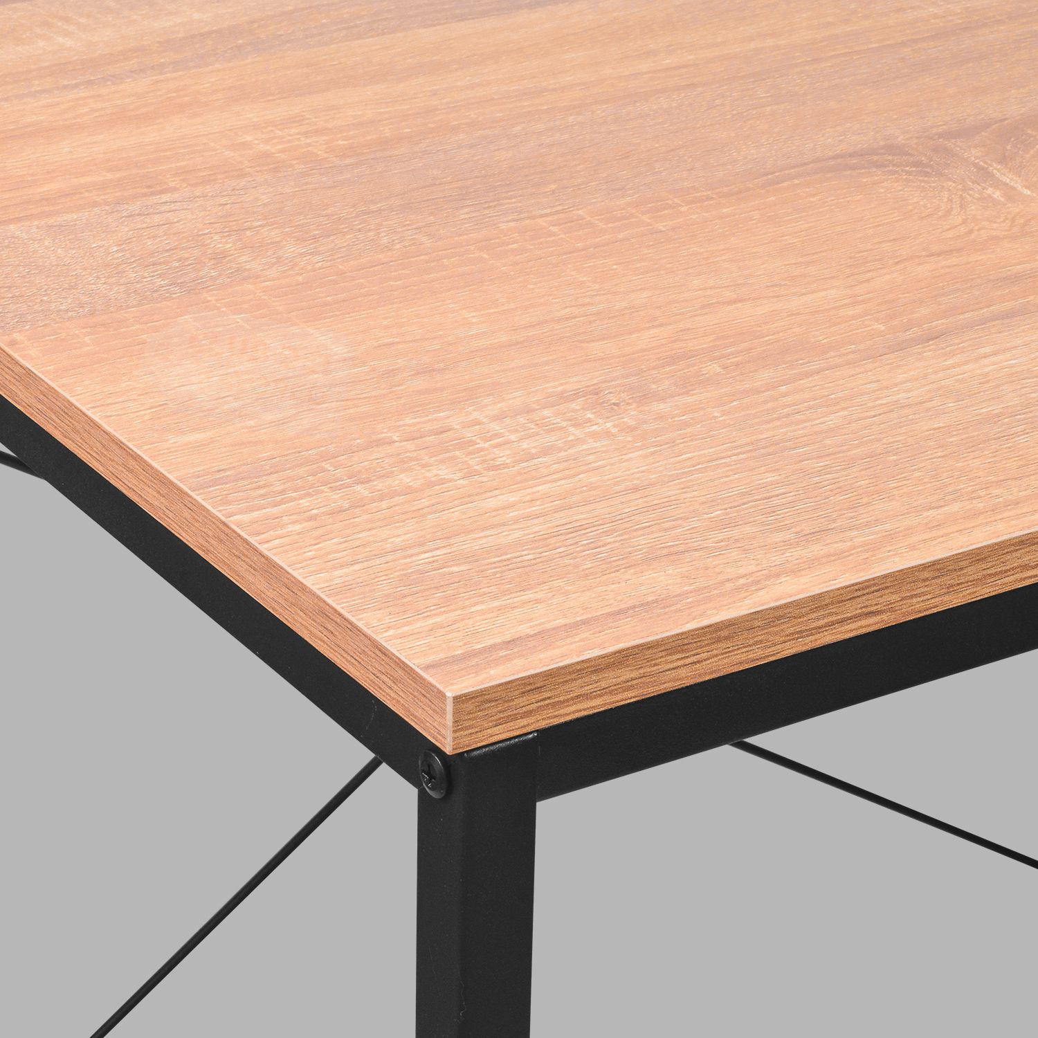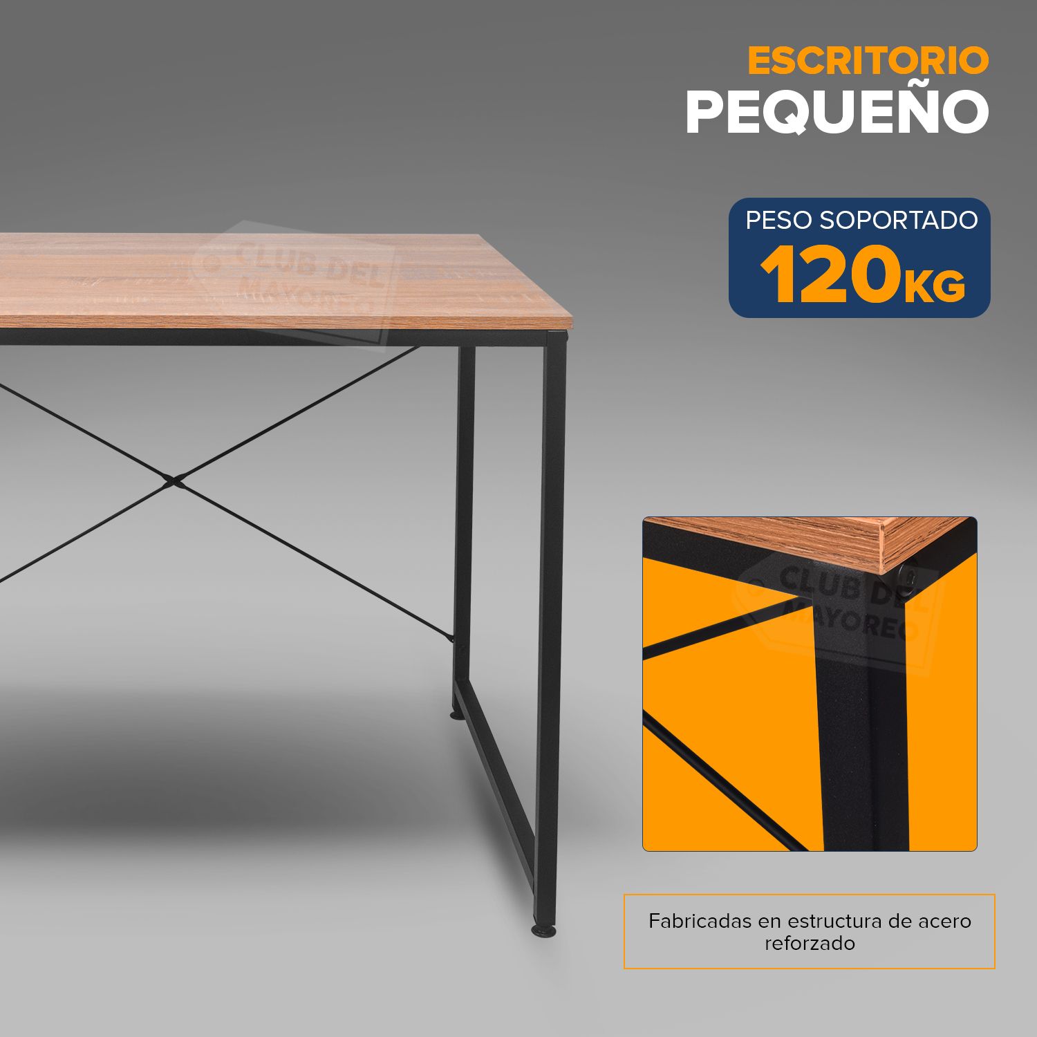 Práctico y pequeño escritorio ideal para escuela, casa, etc. Su mesa mide un área de 80 x 60 cm, grande para realizar cualquier tarea escolar y administrativa. Fabricado en material de acero color negro en su estructura, estable y duradero. La mesa esta fabricada en madera industrializada con melamina tipo madera natural. Su altura es de 74 cm cabe perfectamente un silla de oficina.