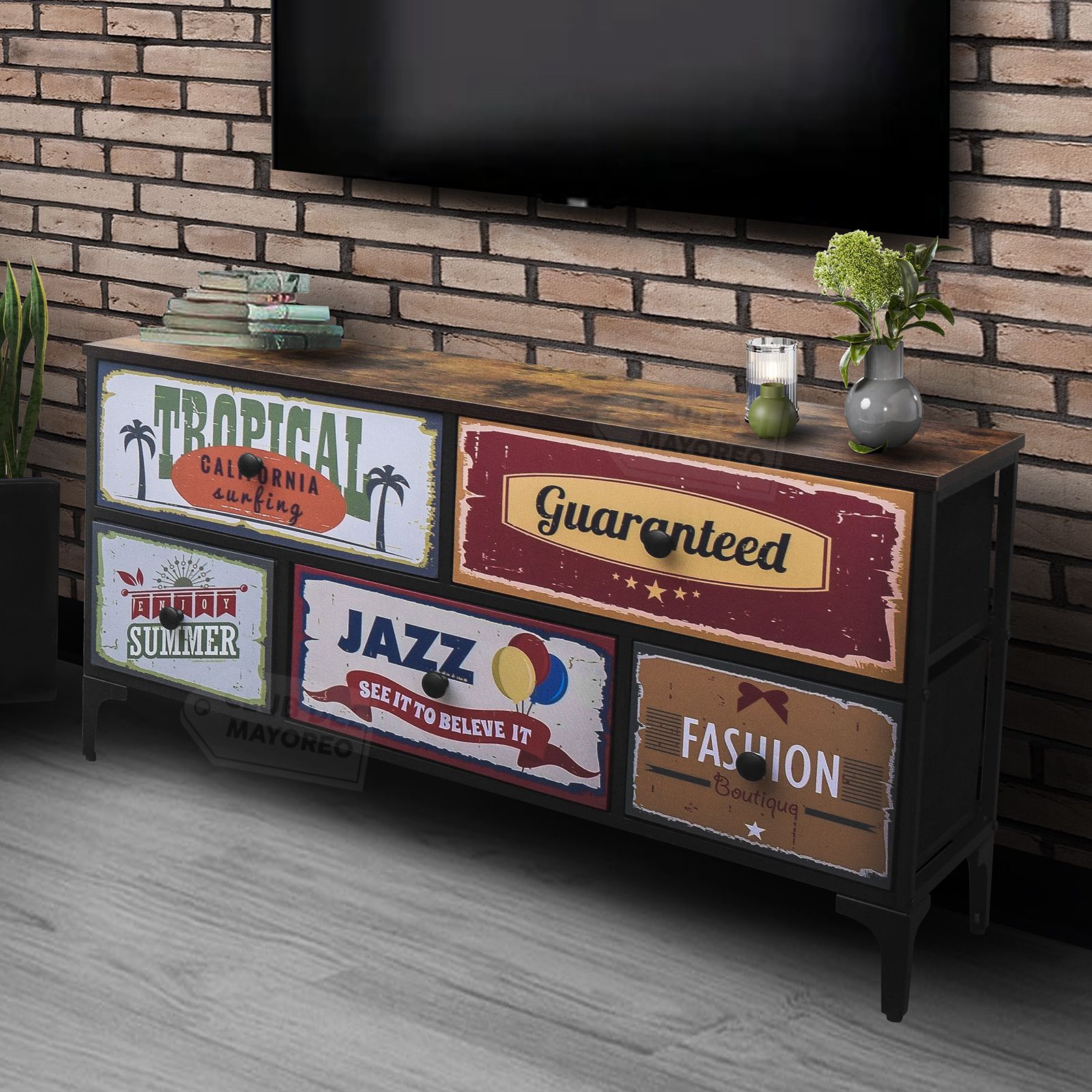 Mueble de TV con 5 Cajones Colección New York Estructura Metálica marca Calandria