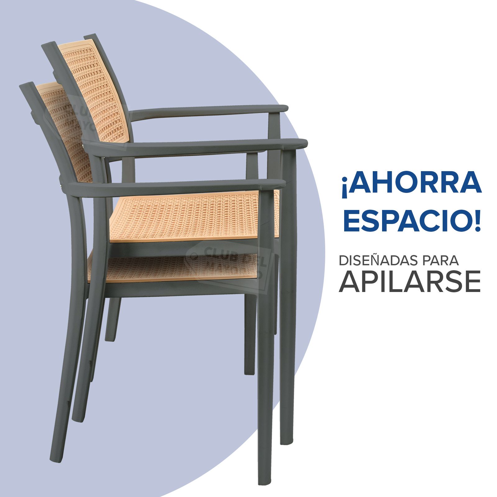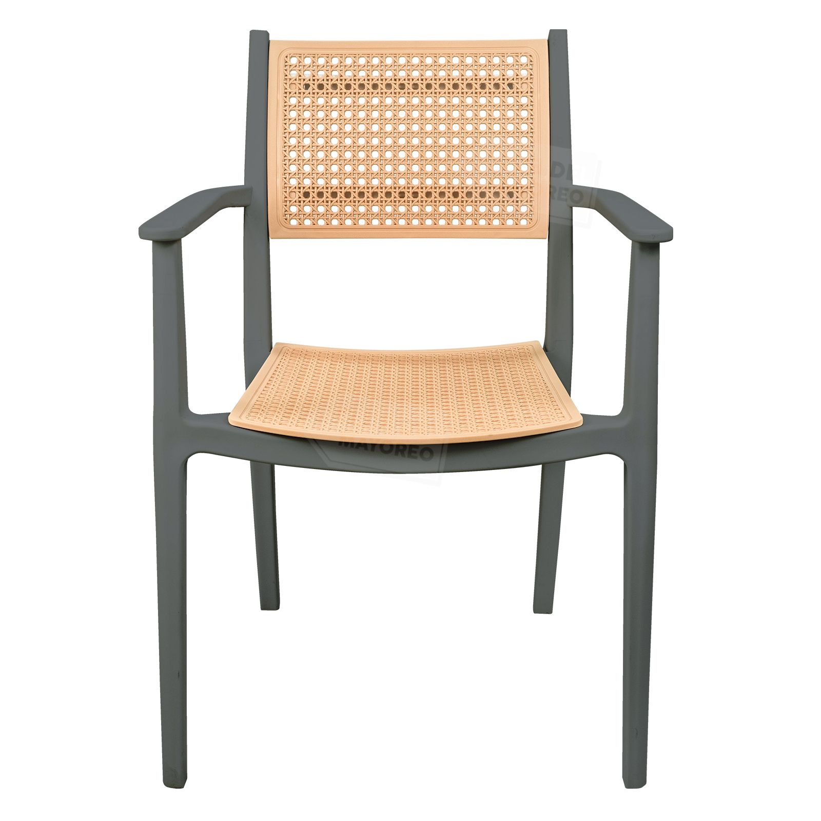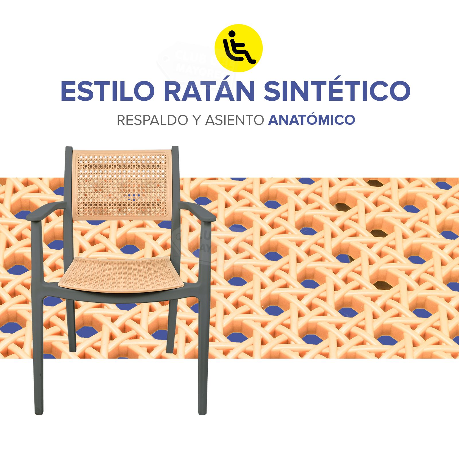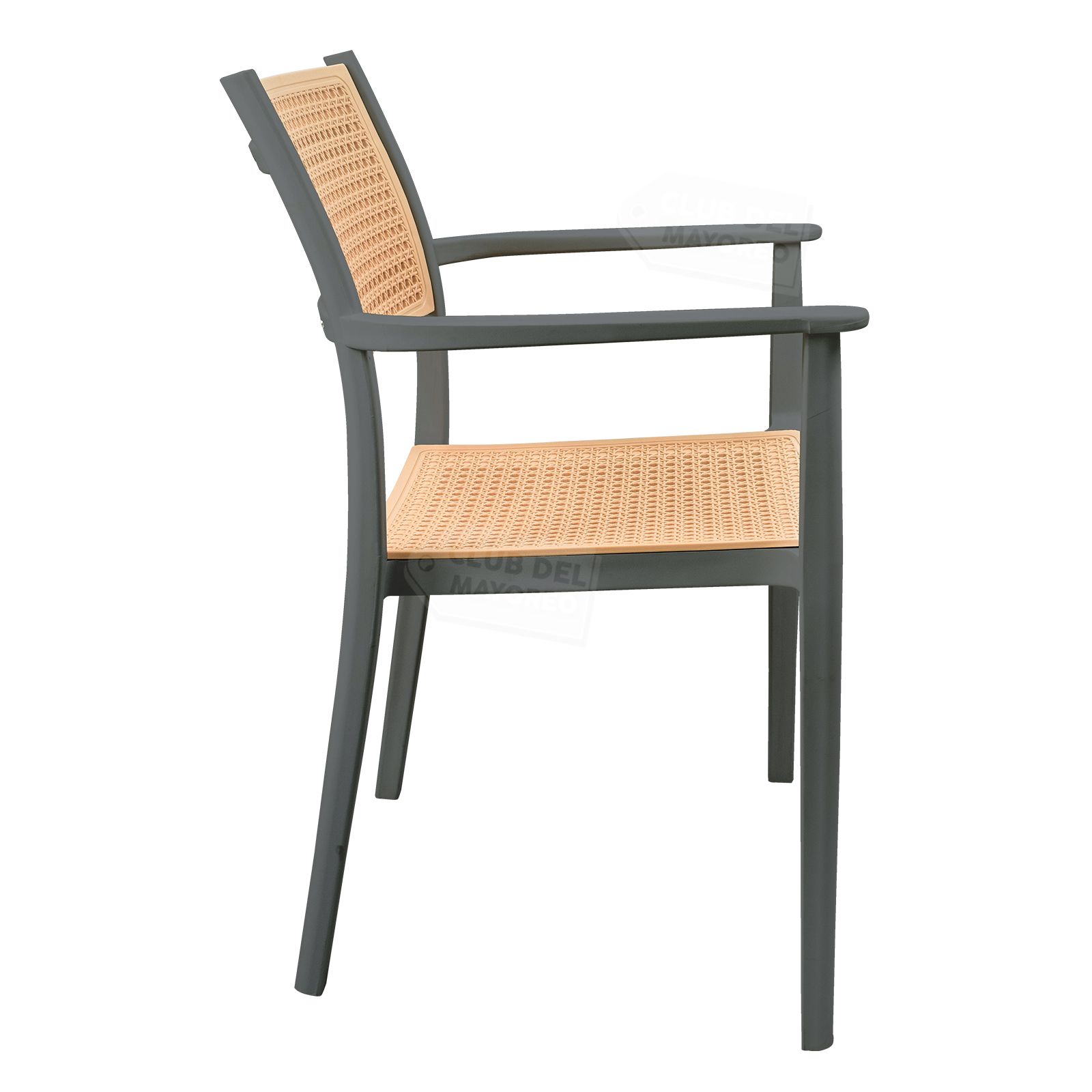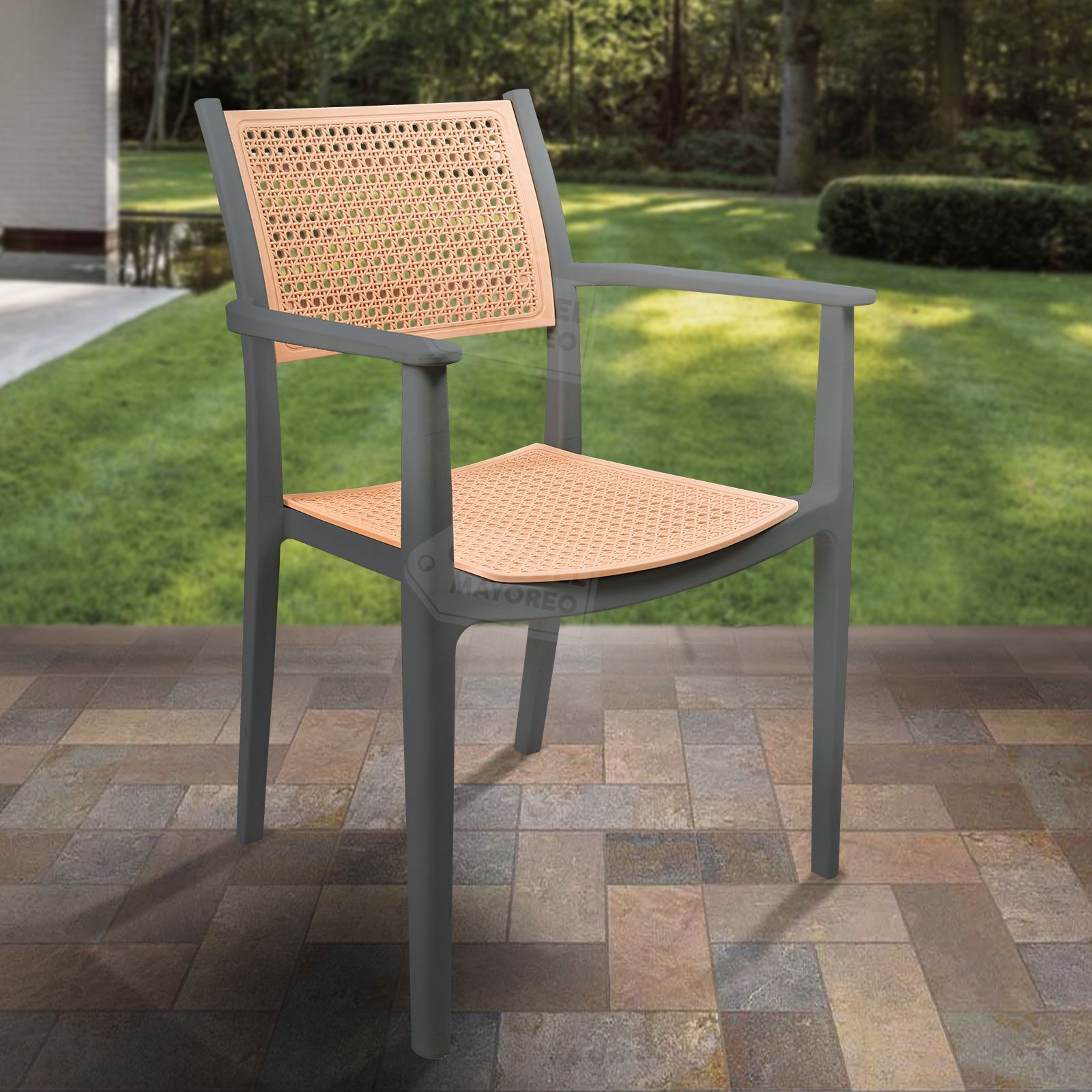 Silla de diseño moderno con acabado tipo ratán que combina estilo, resistencia y comodidad. Fabricada en plástico reforzado de alta durabilidad, es ideal para uso en interiores y exteriores, manteniendo su forma y color con el uso diario.