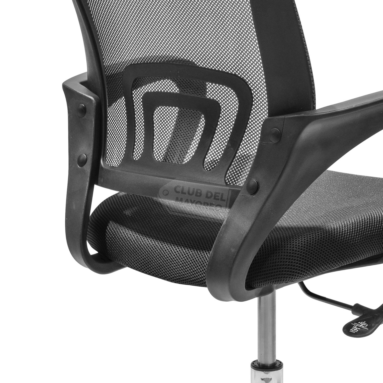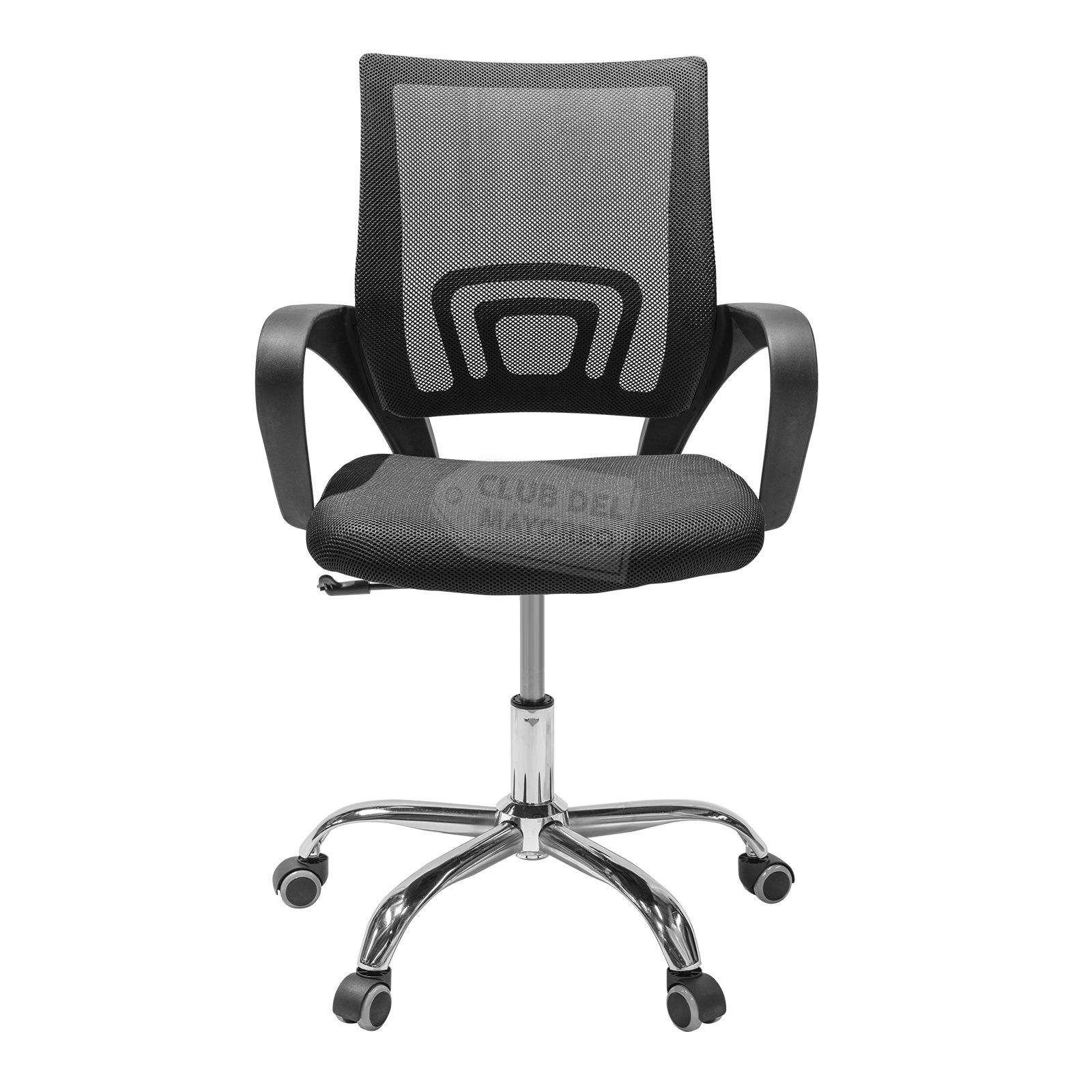 Silla ergonómica para oficina modelo secretarial con respaldo y asiento en malla antitranspirante, respaldo suave para mejor confort, ruedas silenciosas giratorias independientes, base giratoria en metalico tipo cromado, palanca para regular la altura de la silla, brazos en plástico rígido y resistente. La silla puede soportar un peso máximo de 130 Kg.