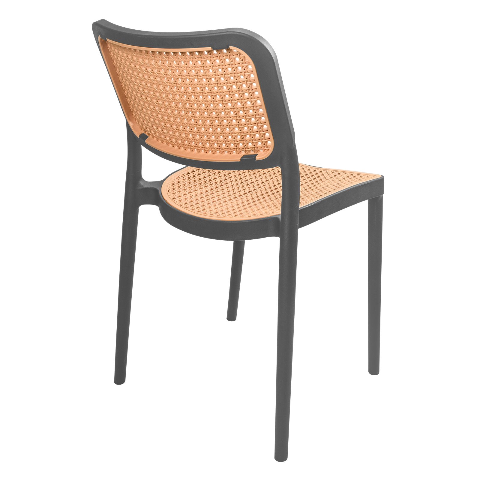 Práctica, funcional y ligera silla ideal para exteriores, cafeterías, restaurantes, fondas, jardín, patio, etc. Fabricadas en resistente plástico tipo polipropileno para convertirlas en sillas ligeras para fácil transporte. Estructura color gris mate y rejilla en asiento y respaldo estilo ratán tejido de polietileno color natural para mayor confort. Se pueden apilar para ahorrar espacio en el almacenaje. La silla puede soportar un peso de 125 Kgs.