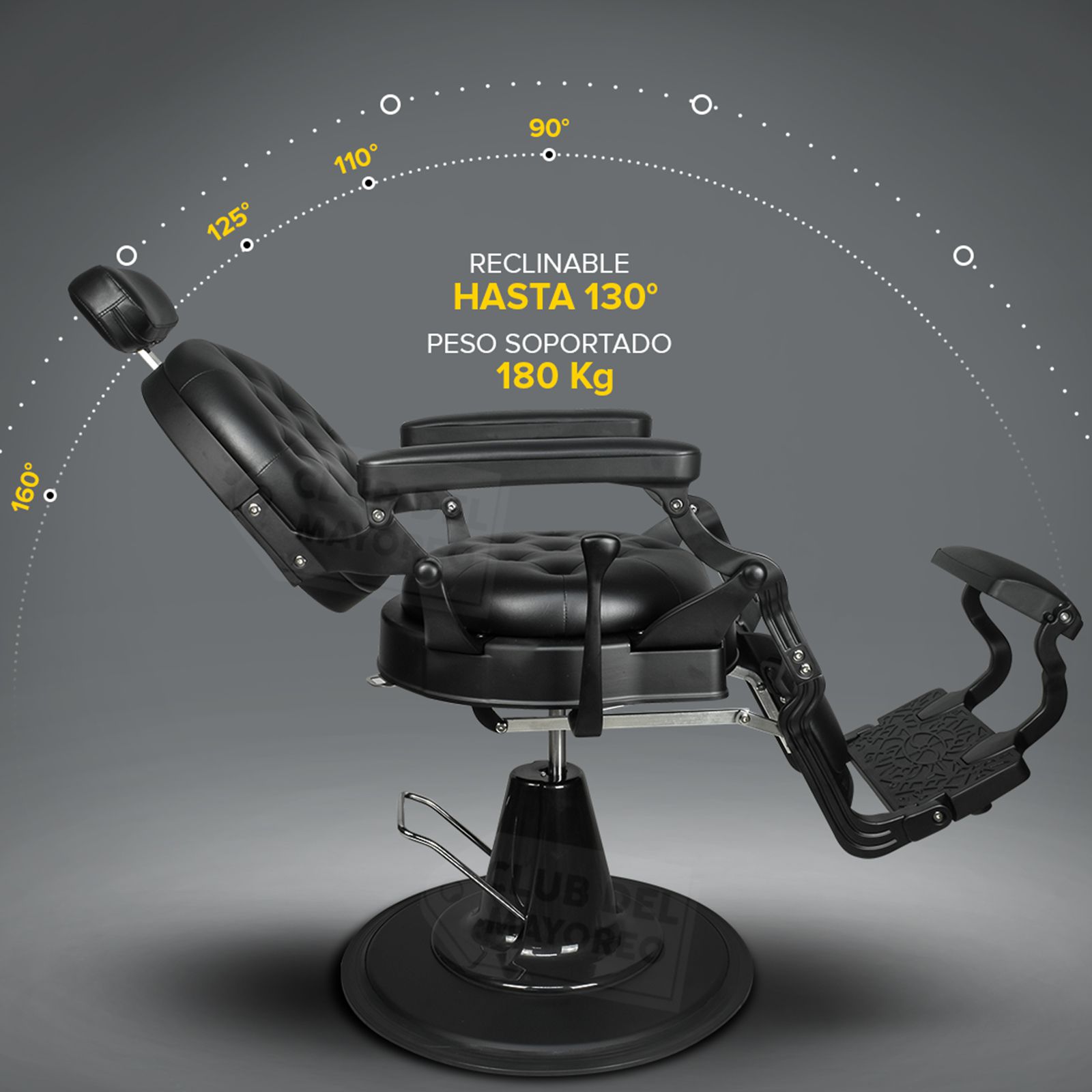 El ajuste de reclinación y altura del sillón permite al barbero trabajar en la postura ideal para cada servicio, mientras que el tapizado resistente y fácil de limpiar asegura durabilidad y facilidad de mantenimiento, incluso con un uso diario. Además, su estructura sólida y robusta le otorgan la estabilidad necesaria para garantizar seguridad y comodidad durante el servicio.