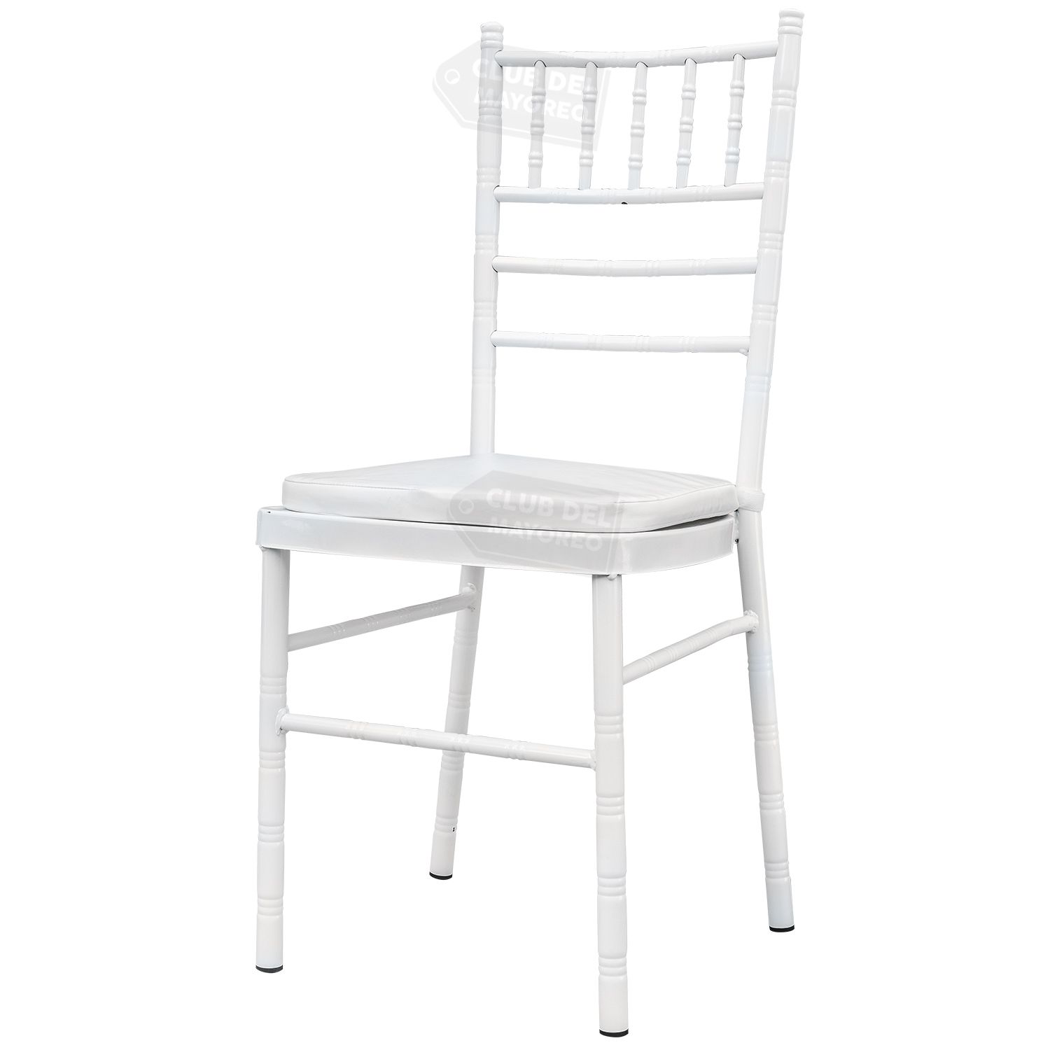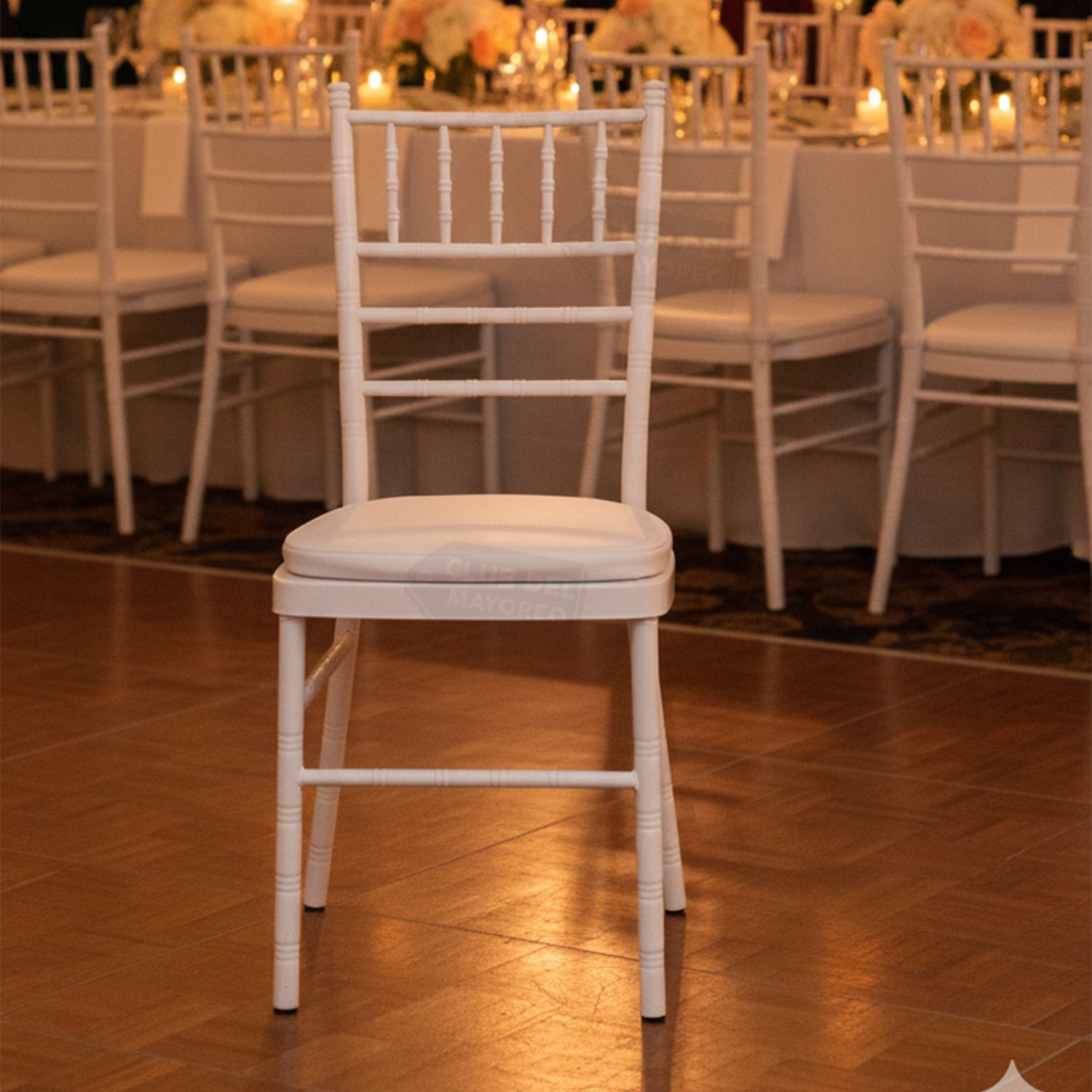 Silla metálica ideal para eventos sociales, banquetes y celebraciones, con un diseño elegante y funcional. Su acabado en color blanco aporta un estilo limpio y sofisticado, perfecto para bodas, reuniones y eventos formales.