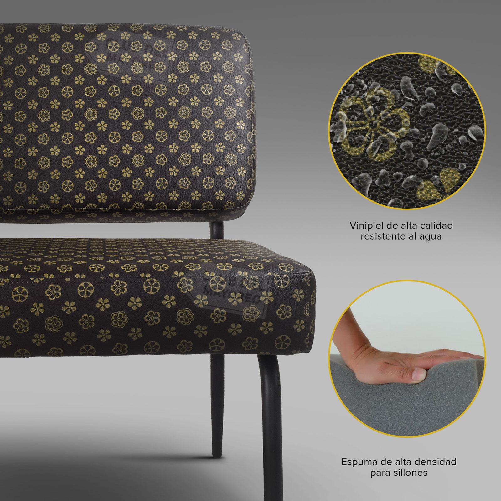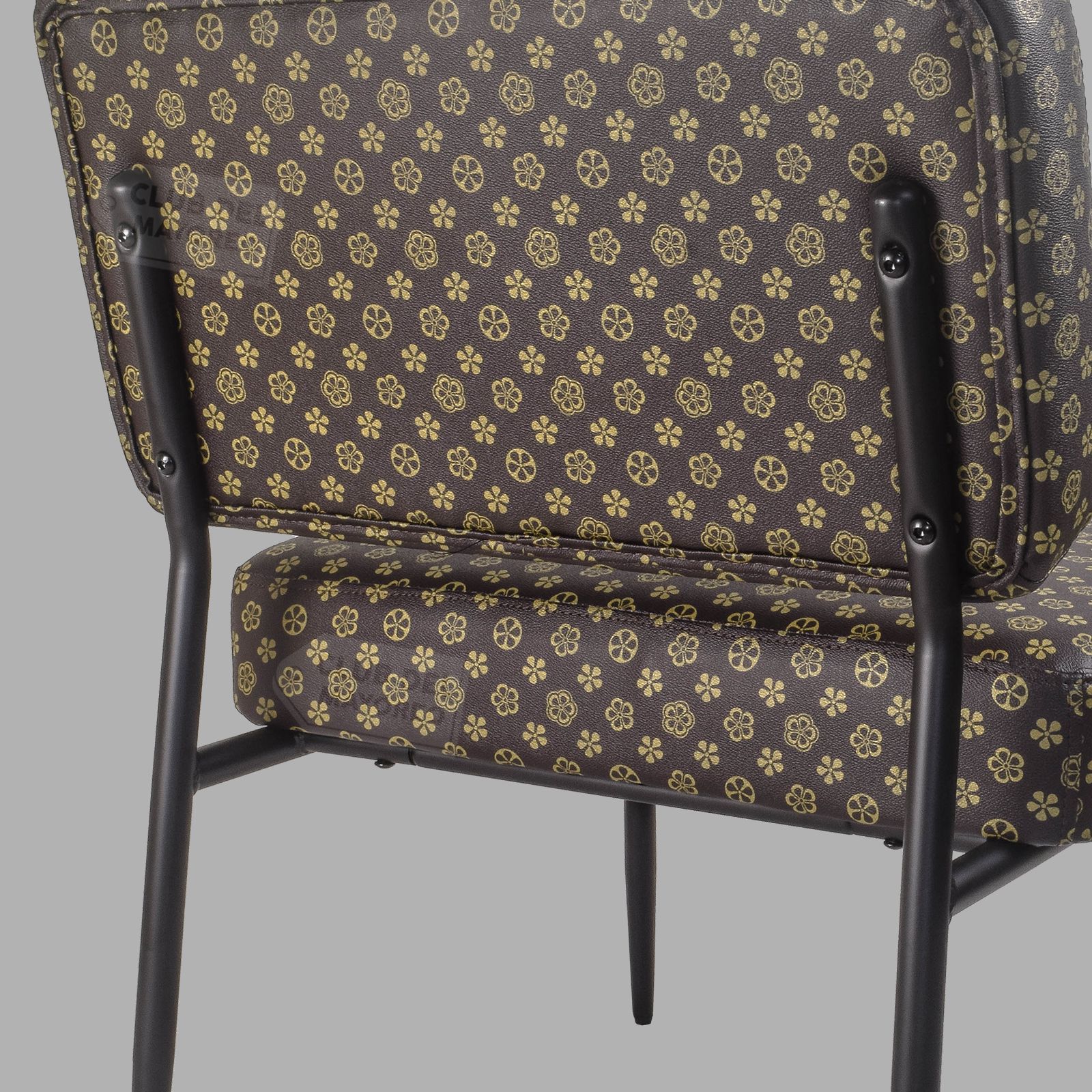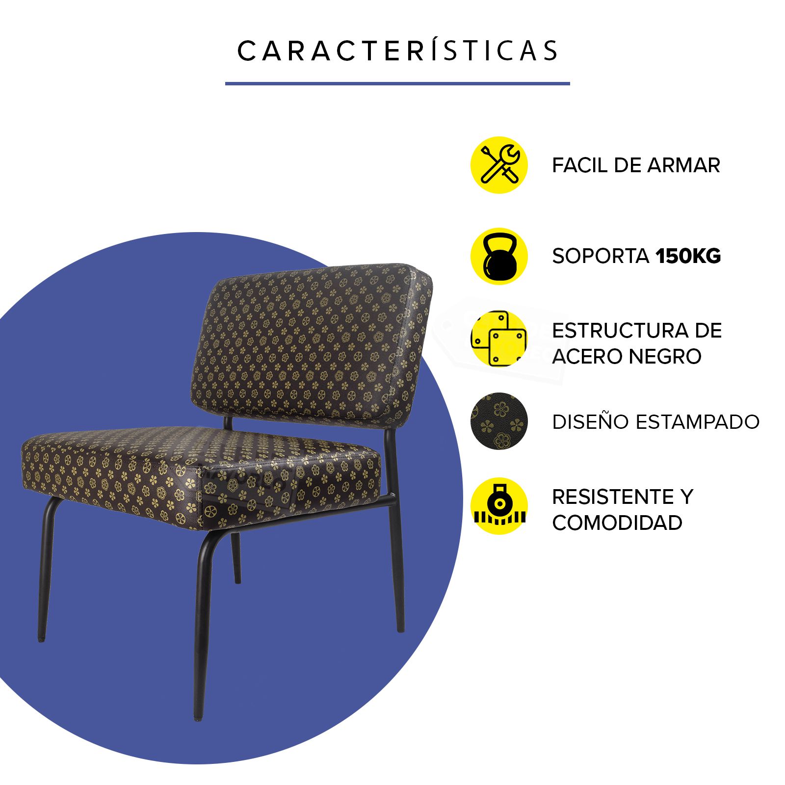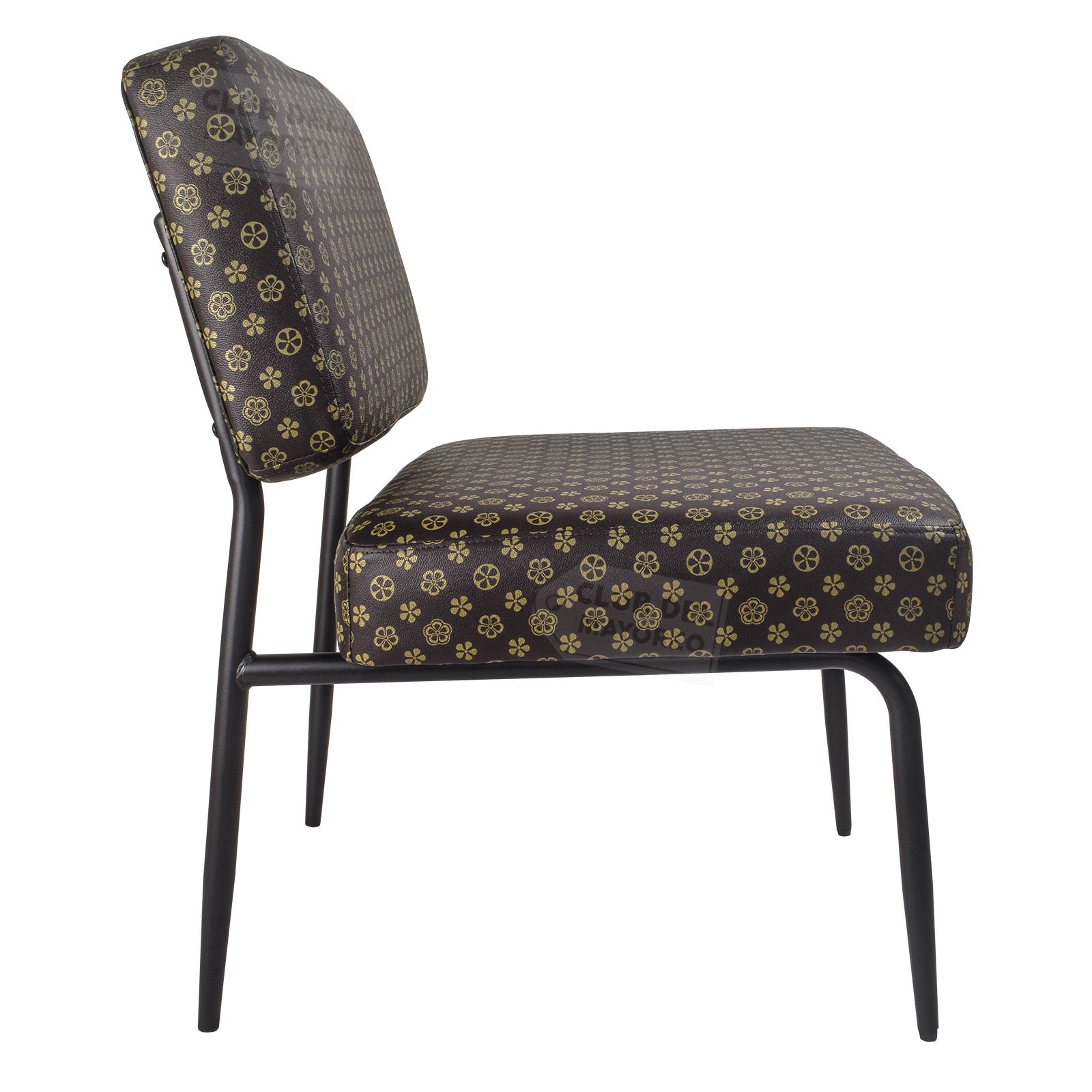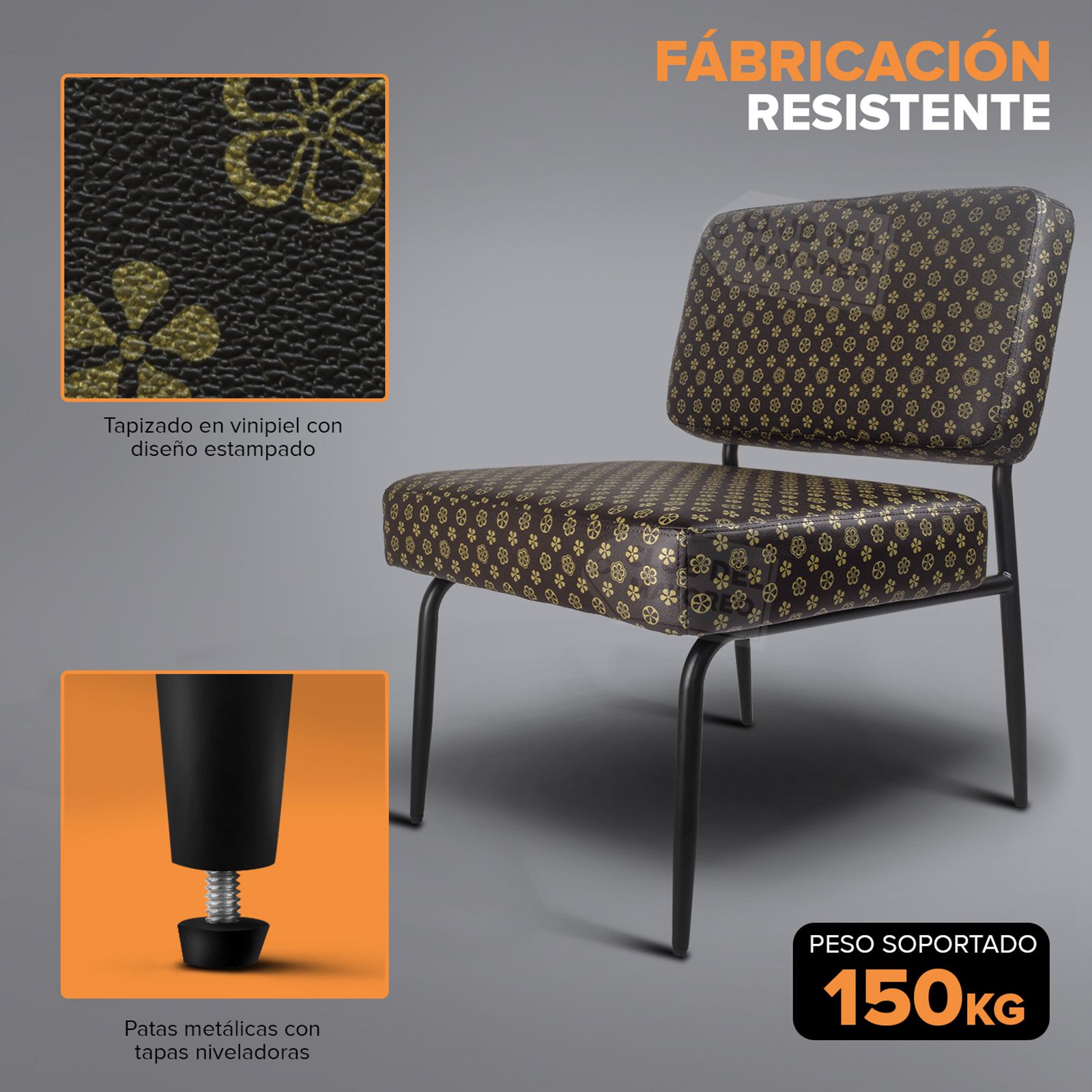 Elegante y cómodo sillón individual ocasional para estancias pequeñas, terrazas techadas, salas, lobby, etc. Fabricado en base metalica tubular con colchonetas de asiento y respaldo en forro vinipiel color cafe con estampado. Crea o renueva tus ambientes con este sillón que combina con cualquier lugar. Puede resistir un peso de 150 Kg.