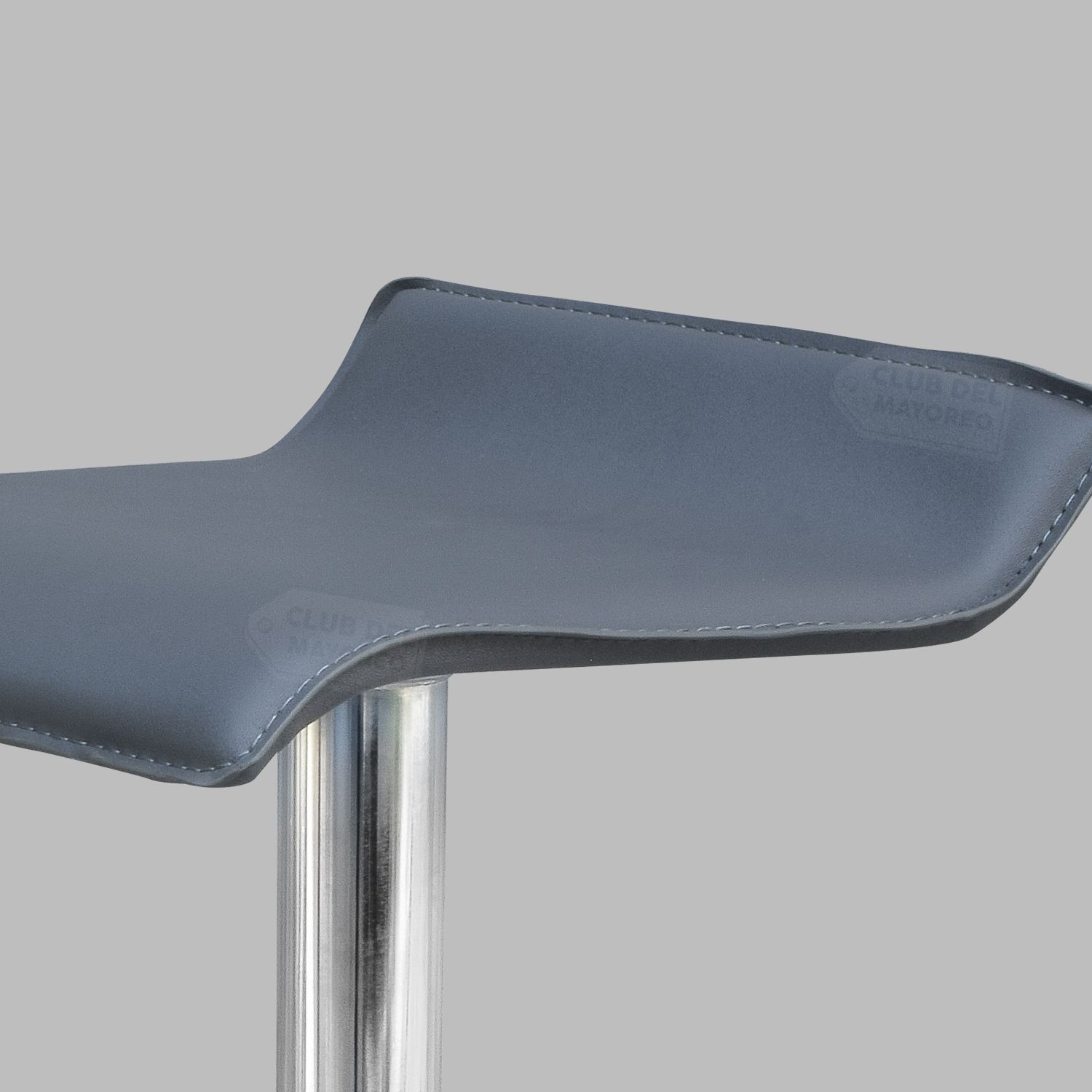 Banco de cocina con asiento plano tapizado en vinipiel color gris, de estilo moderno y versátil que se adapta fácilmente a distintos tipos de decoración. Su color neutro lo hace ideal para cocinas contemporáneas y minimalistas.