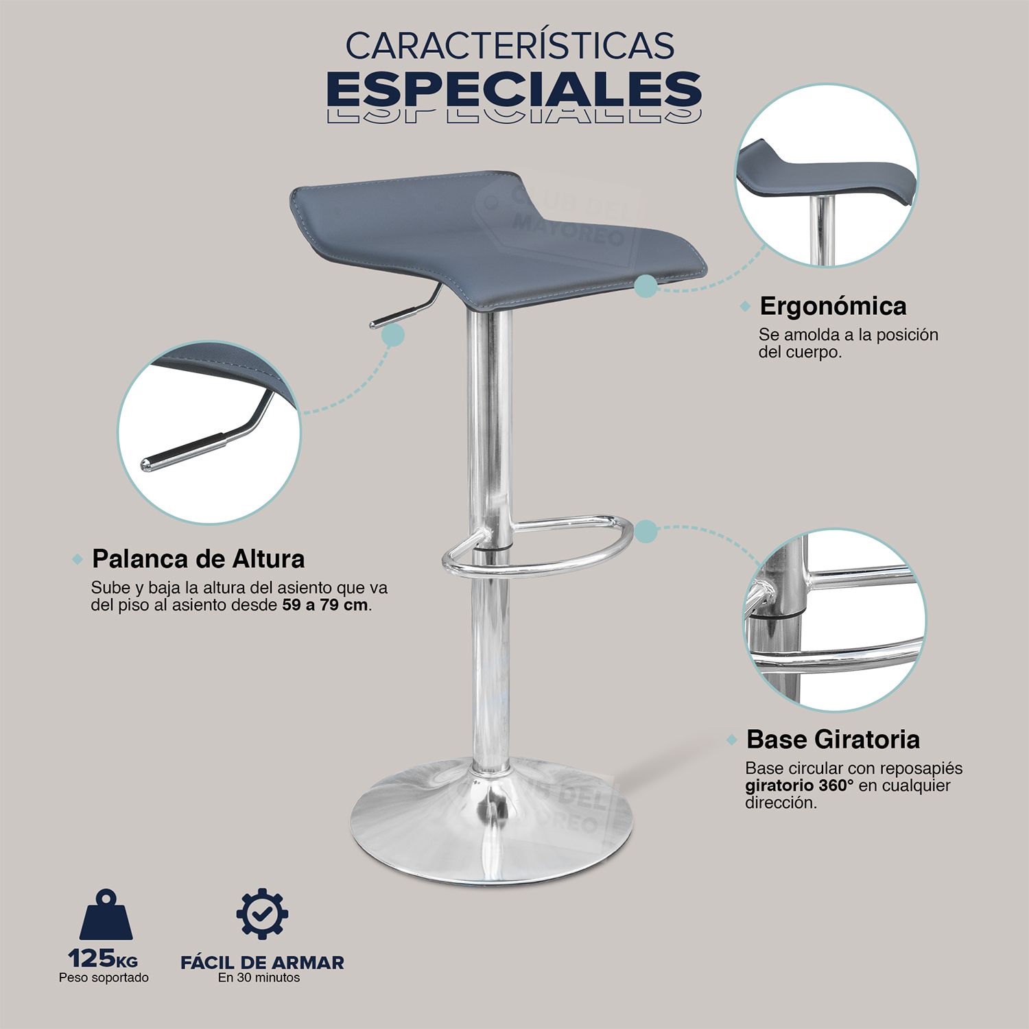Fabricado con estructura metálica resistente, ofrece estabilidad y larga vida útil. Incluye descansapiés integrado para mayor confort, y su material en vinipiel facilita la limpieza y el mantenimiento diario.