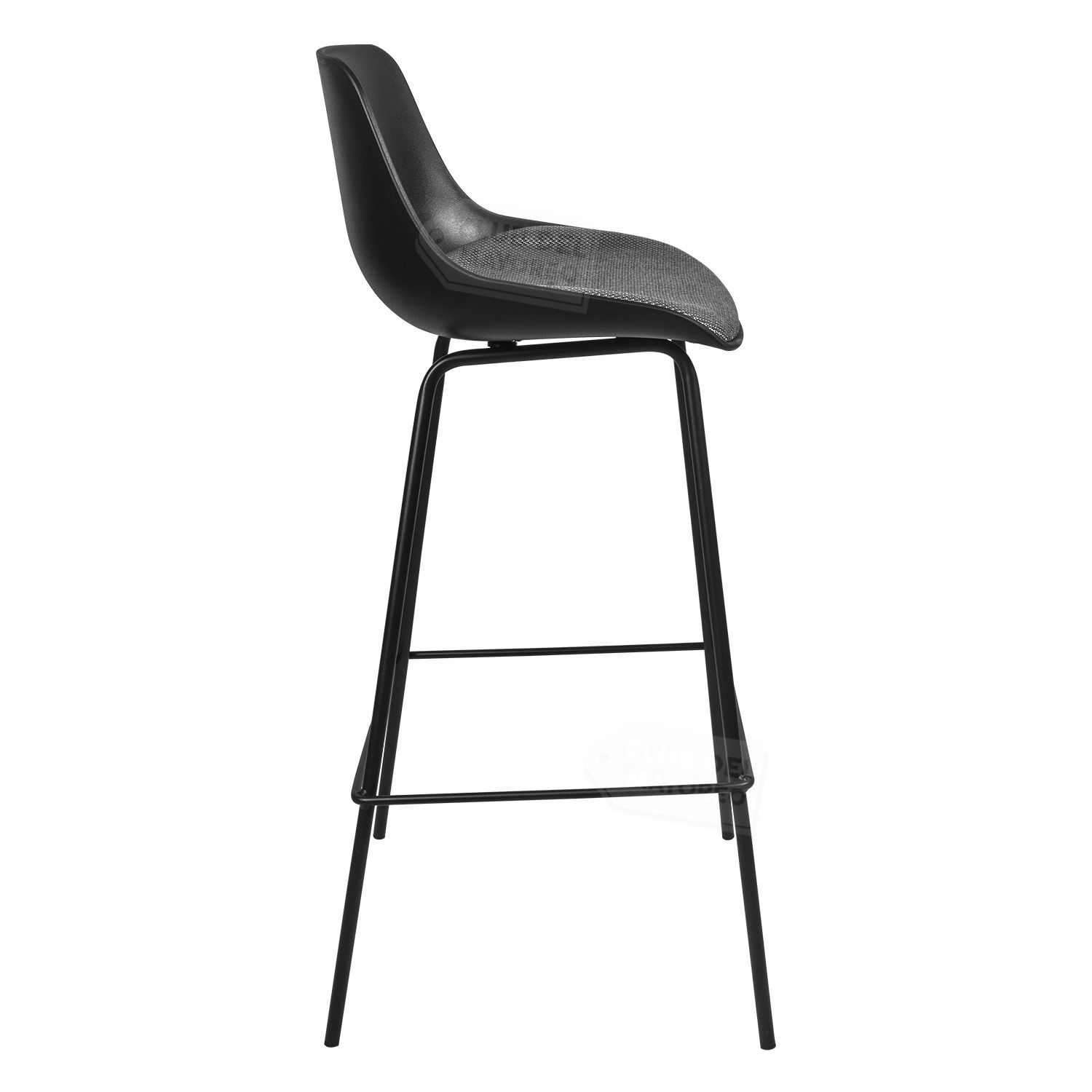 Banco alto para barra, bar, restaurante, comidas, etc. Moderno estilo eames color negro con cojinete acolchado en asiento. Estructura metalica color negro, resistente que puede soportar un peso de hasta 100 kg.