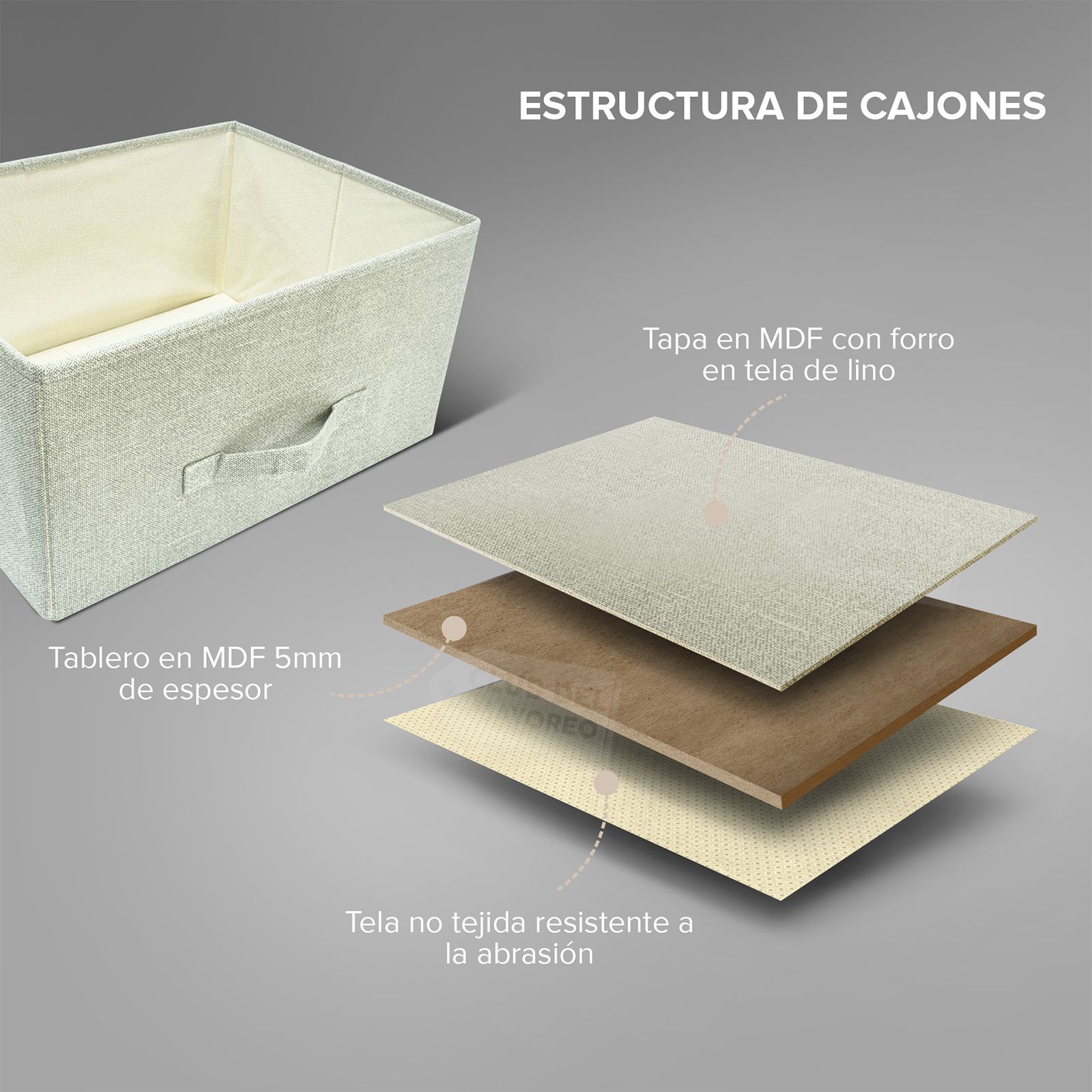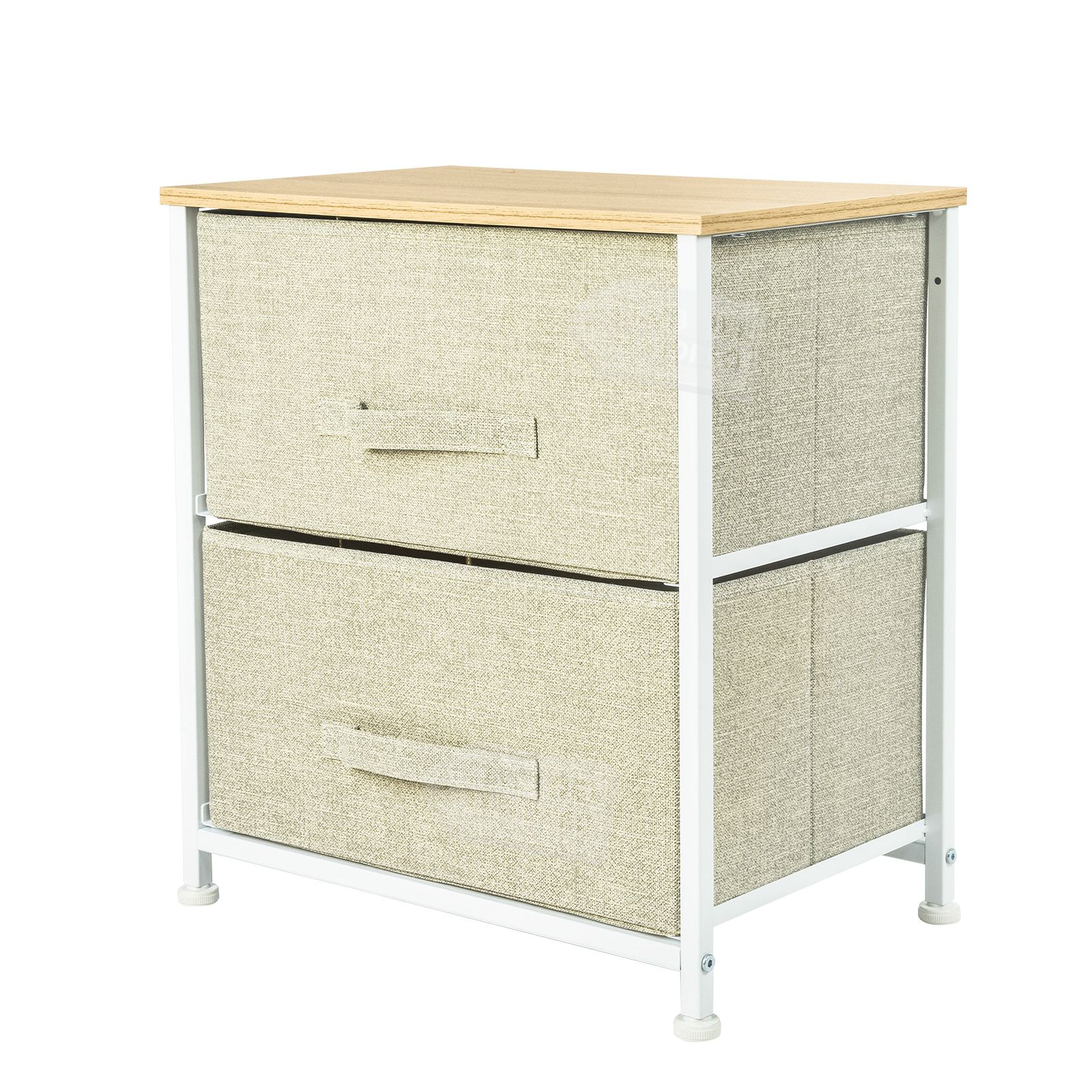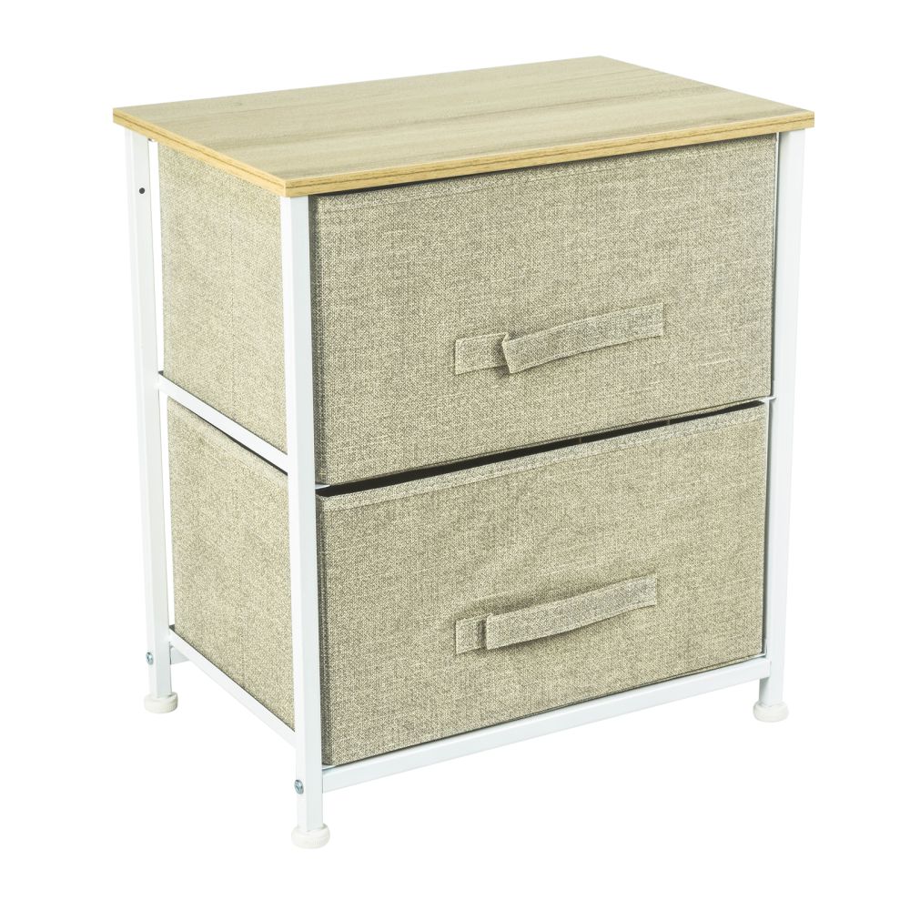 Moderno y sencillo buro de la coleccion Paris con dos cajones en tela de lino color beige, interior con tapas en MDF y tela no tejida color beige. Fabricado con estructura metálica resistente y repisa superior en madera industrializada con melamina tipo madera natural. Idea para combinar con cualquier ambiente de tu recámara. Puede soportar hasta 30 kg en la repisa y entre 8 y 10 Kg en cada cajon. Fácil de armar en solo 20 minutos.