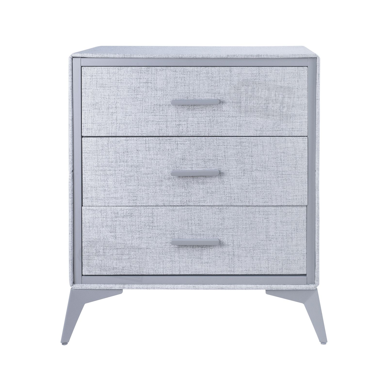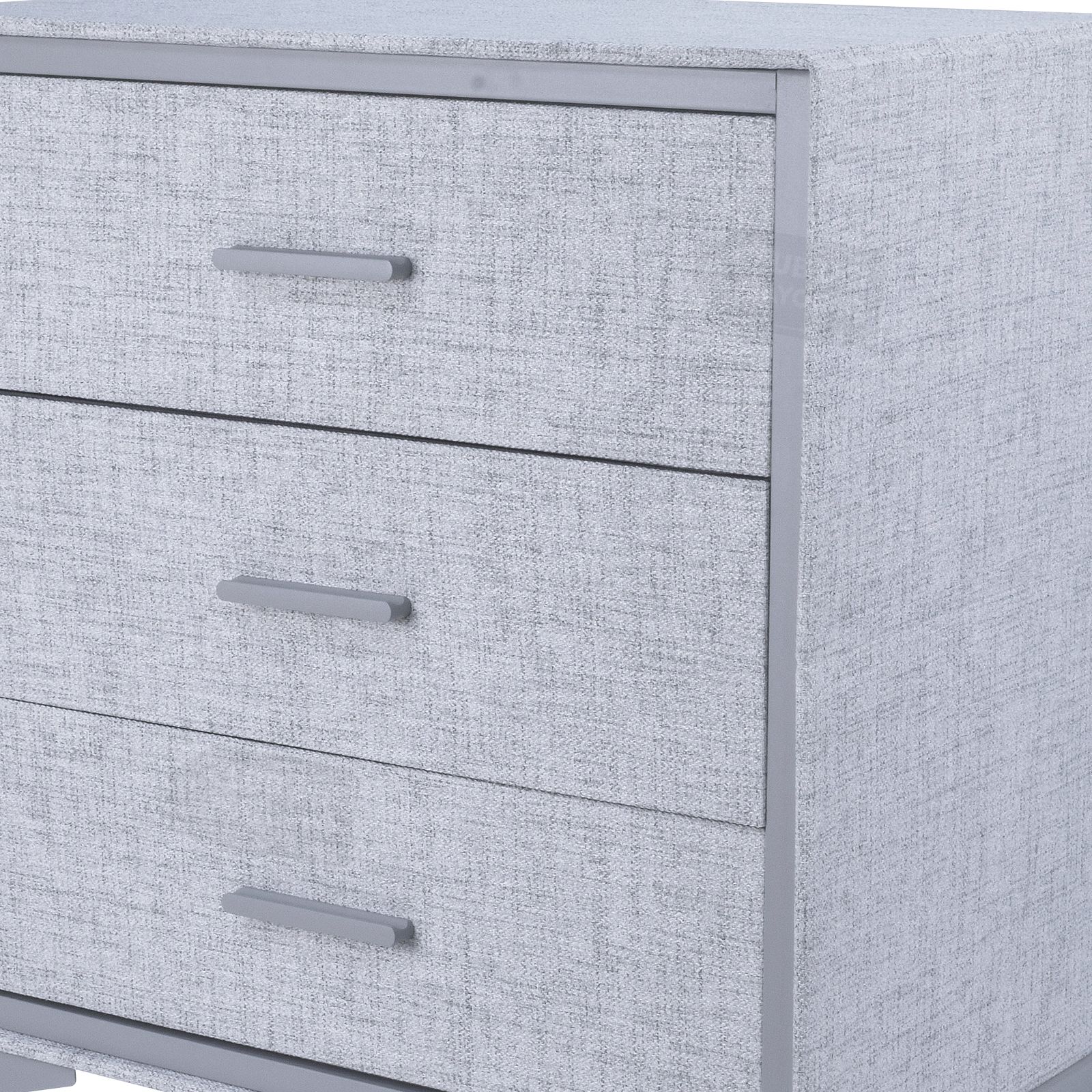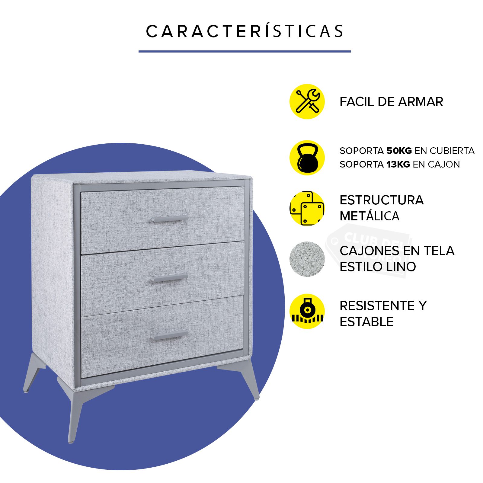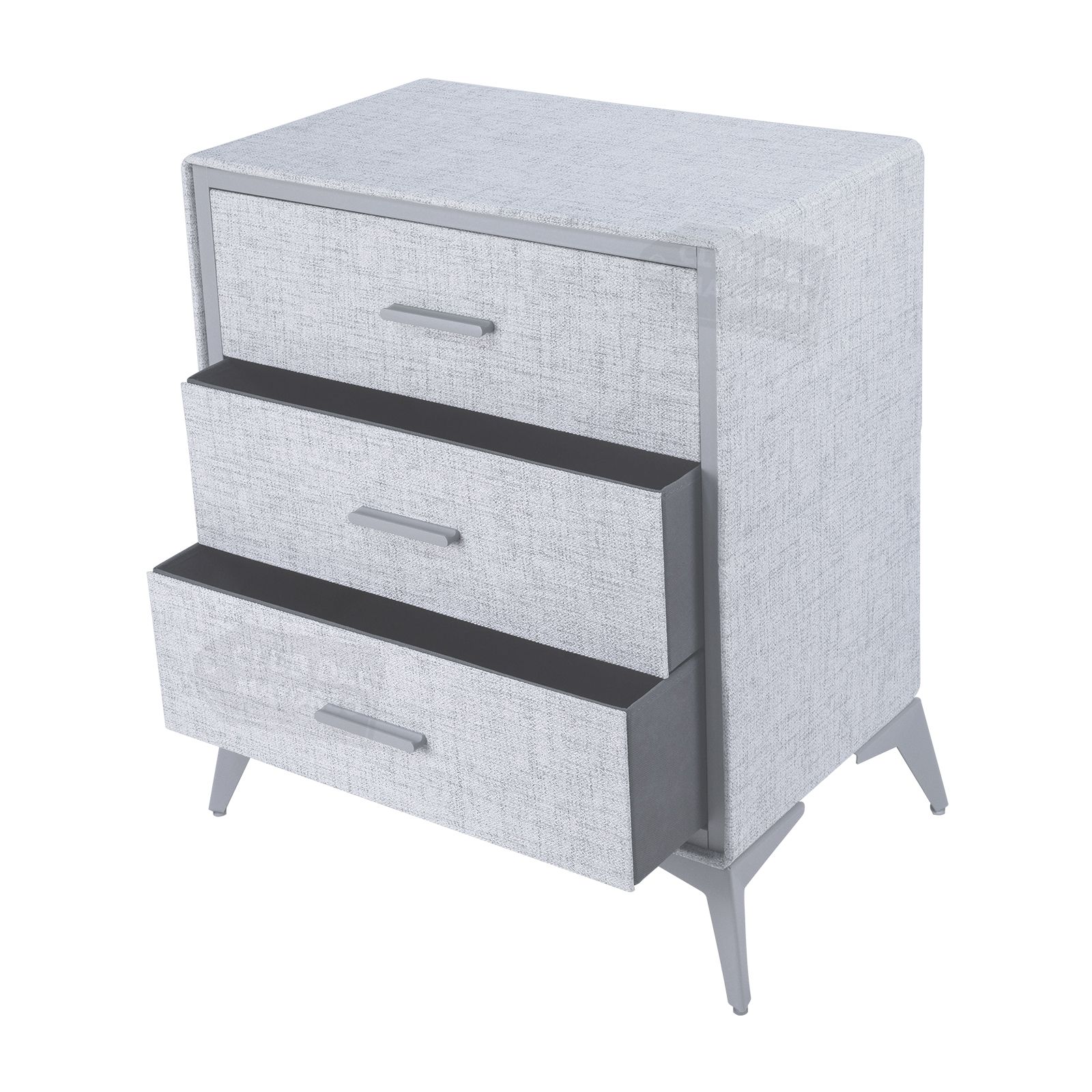 Cajonera con 3 Cajones Colección Roma Estructura Metálica y Forro en tela de lino gris marca Calandria