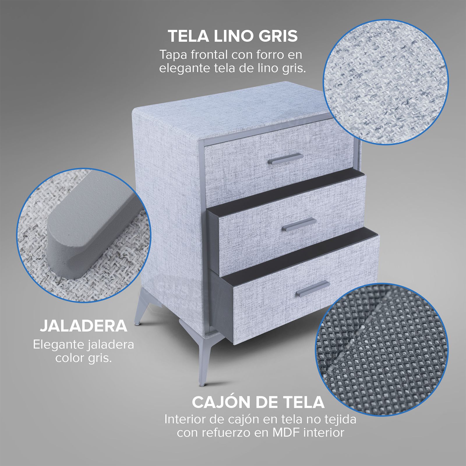 Cajonera Vertical de 3 Cajones Tela Lino Gris Coleccion Roma