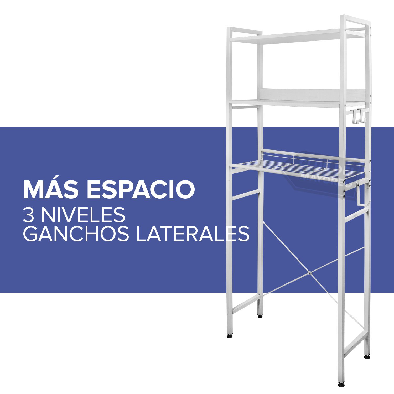 Perfecto organizador para baño con el cual podras almacenar y tener siempre a la mano toallas, papel higienico, limpiadores, cepillos, utensilios y mas. Mantiene los espacios del baño en su lugar y perfectamente ordenados, proporcionando un entorno limpio. Ahorre y aproveche el máximo en espacios cuenta con 3 niveles de almacenaje y ganchos laterales. Construido en materiales resistentes a la humedad.