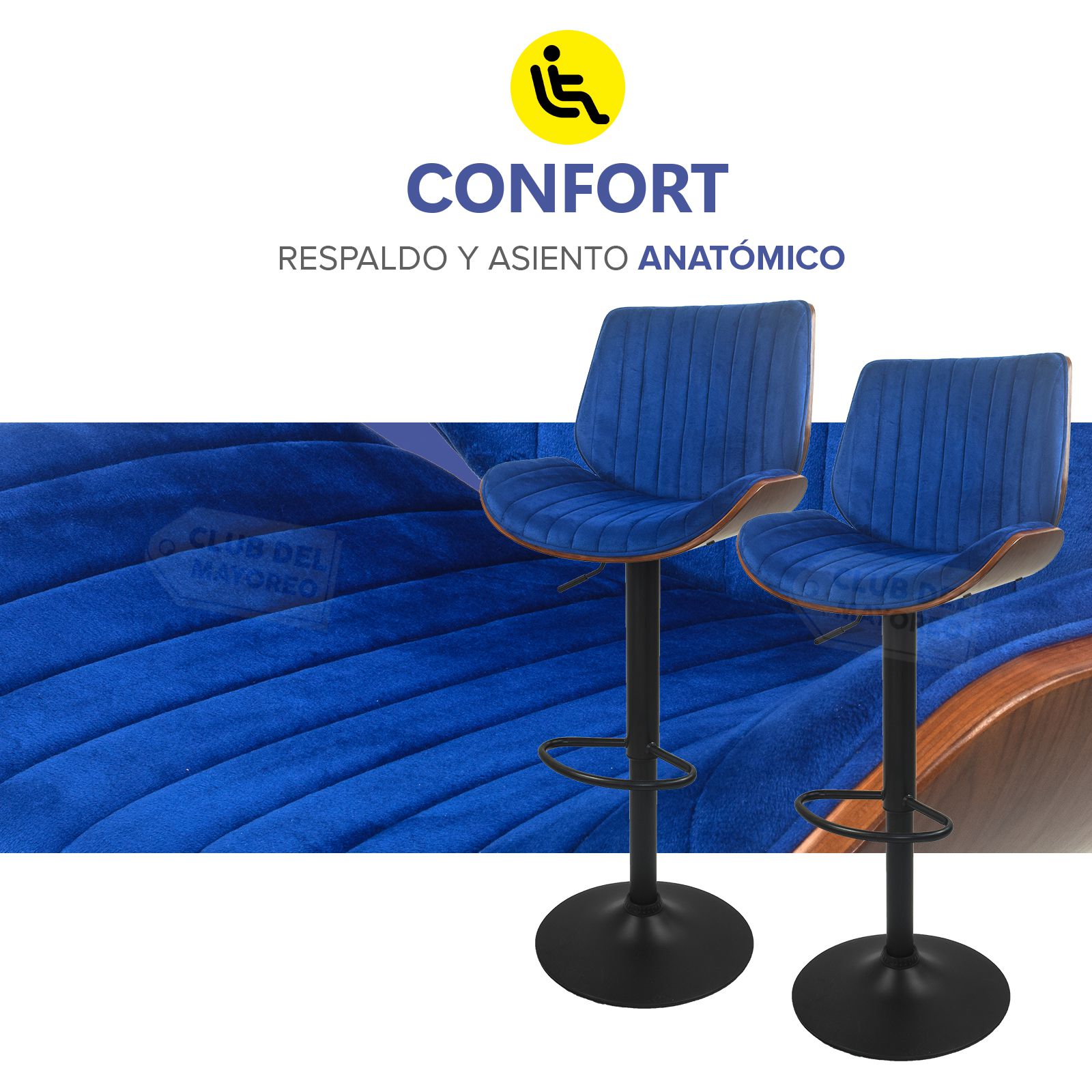 El Par de Bancos para Barra Alto Giratorio Velvet Azul 120kg es la opción perfecta para quienes buscan un asiento sofisticado, cómodo y resistente. Con un diseño moderno y asiento giratorio, estos bancos brindan mayor comodidad y flexibilidad, permitiéndote moverte con facilidad mientras disfrutas de tu espacio.