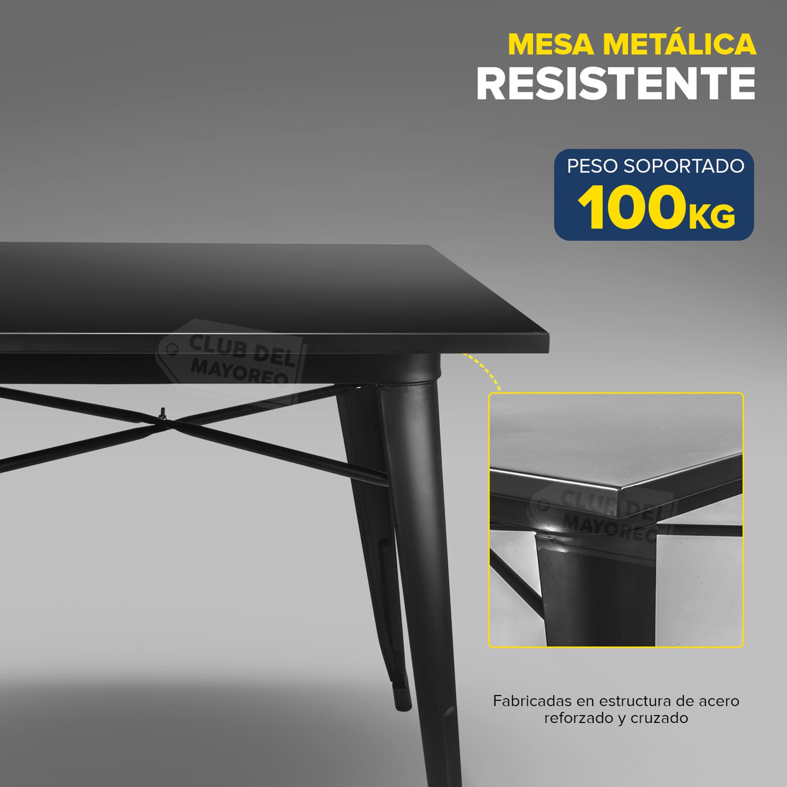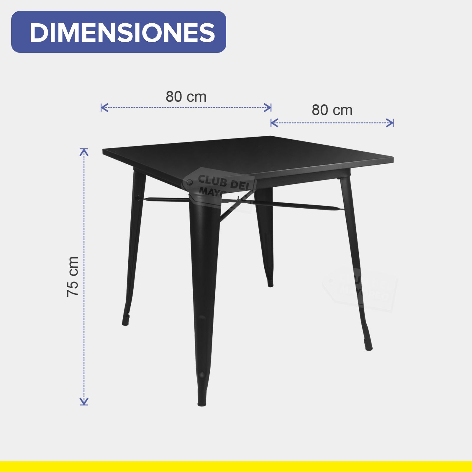 Tamaño: 80x80 cm, perfecto para comedores, bares o espacios que necesitan una mesa de tamaño medio.