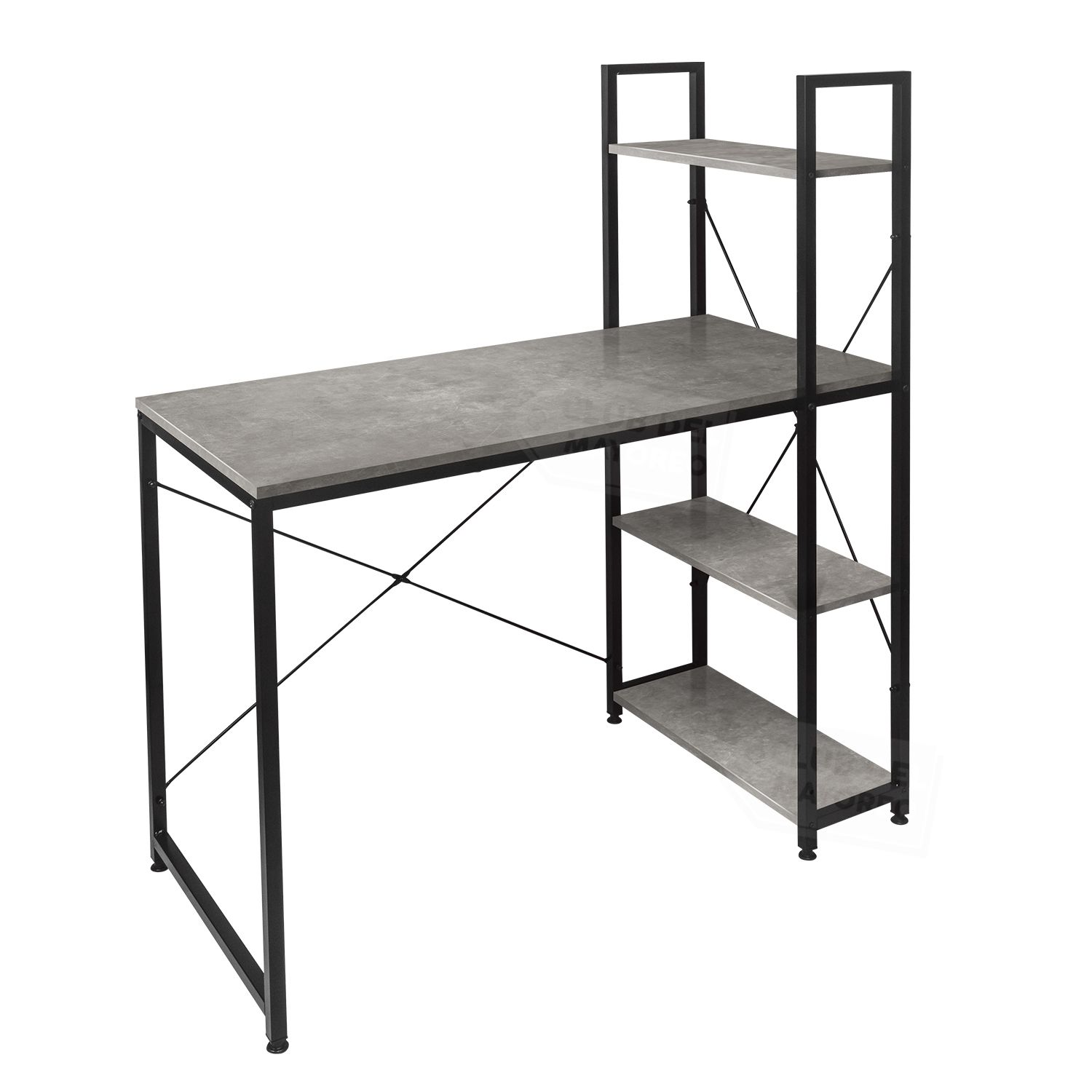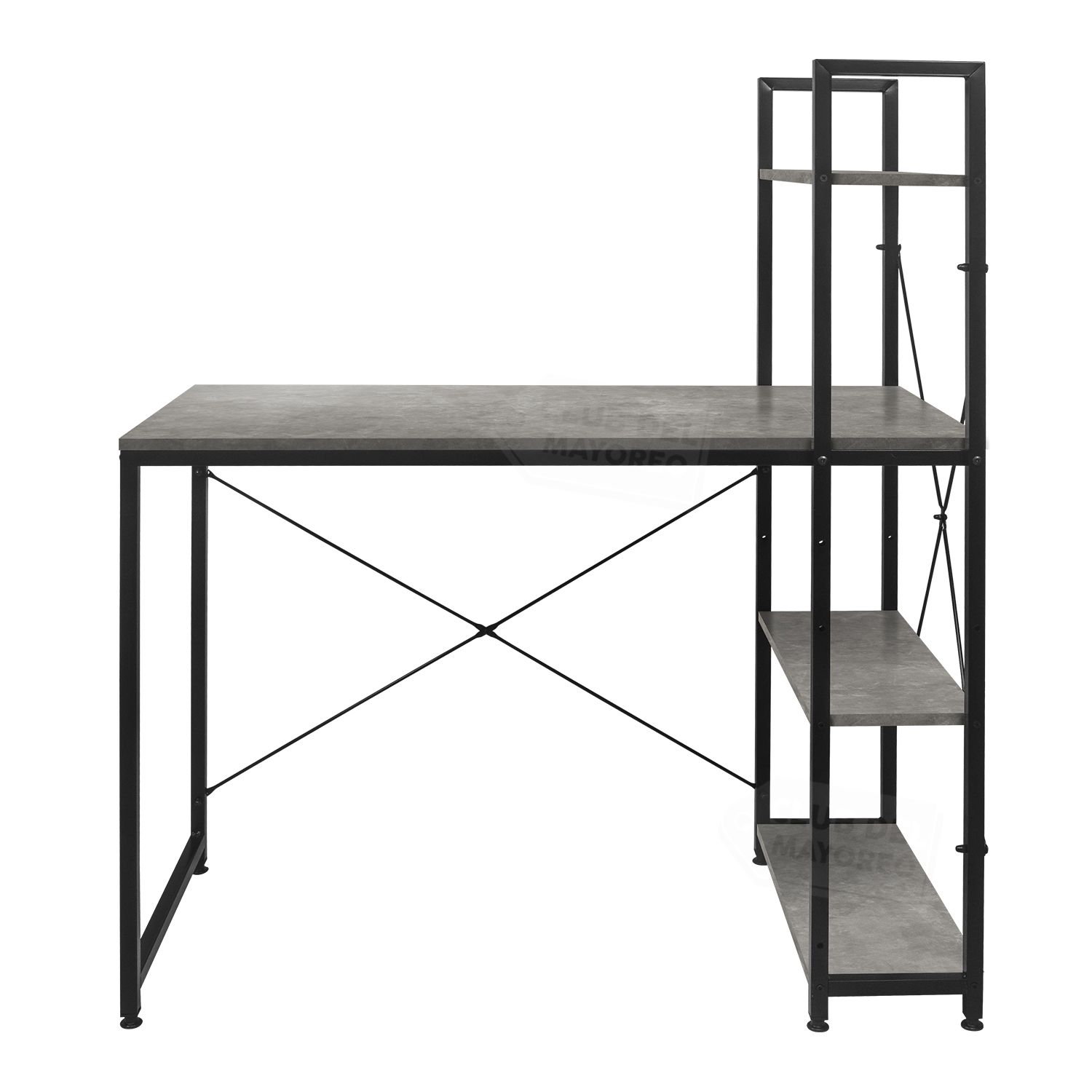 Práctico y pequeño escritorio ideal para oficina, escuela, casa, etc. Su mesa mide un área de 100 x 48 cm, grande para realizar cualquier tarea administrativa. Cuenta con un estante lateral con una altura de hasta 122 cm, que se puede colocar en cualquier lado del escritorio que usted desee. Fabricado en material de acero color negro en su estructura, estable y duradero. La mesa esta fabricada en madera industrializada con melamina tipo madera natural. La altura de la mesa es de 74 cm cabe perfectamente un silla de oficina.