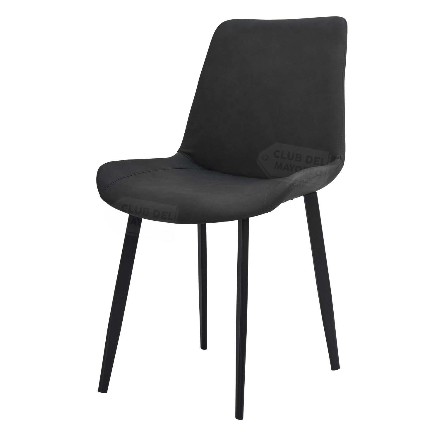 Silla para comedor de diseño moderno con asiento tapizado en vinipiel color gris, ideal para complementar espacios contemporáneos y elegantes. Su tono neutro permite combinarla fácilmente con distintos estilos de mesas y decoración.