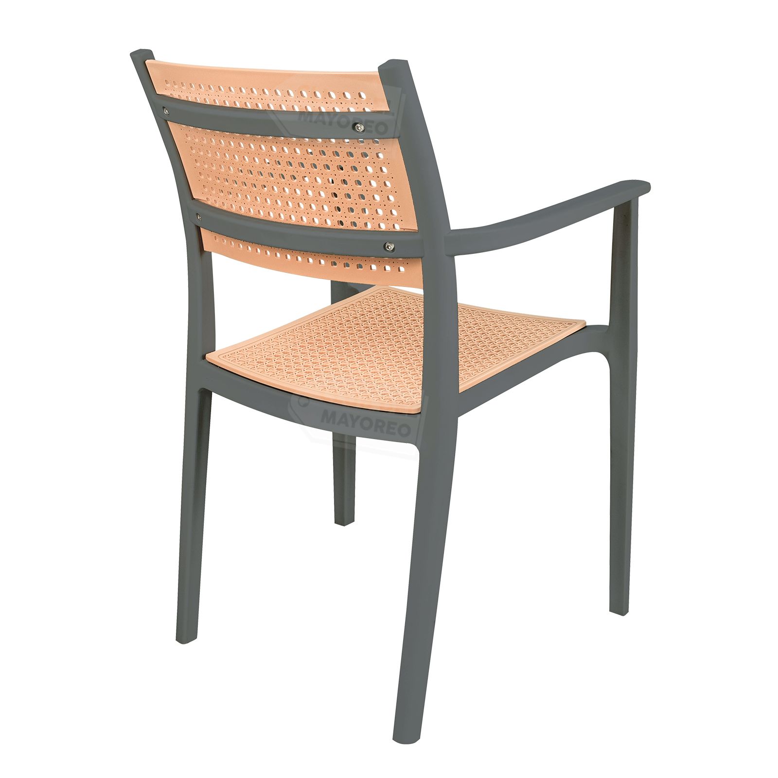 Silla de diseño moderno con acabado tipo ratán que combina estilo, resistencia y comodidad. Fabricada en plástico reforzado de alta durabilidad, es ideal para uso en interiores y exteriores, manteniendo su forma y color con el uso diario.
