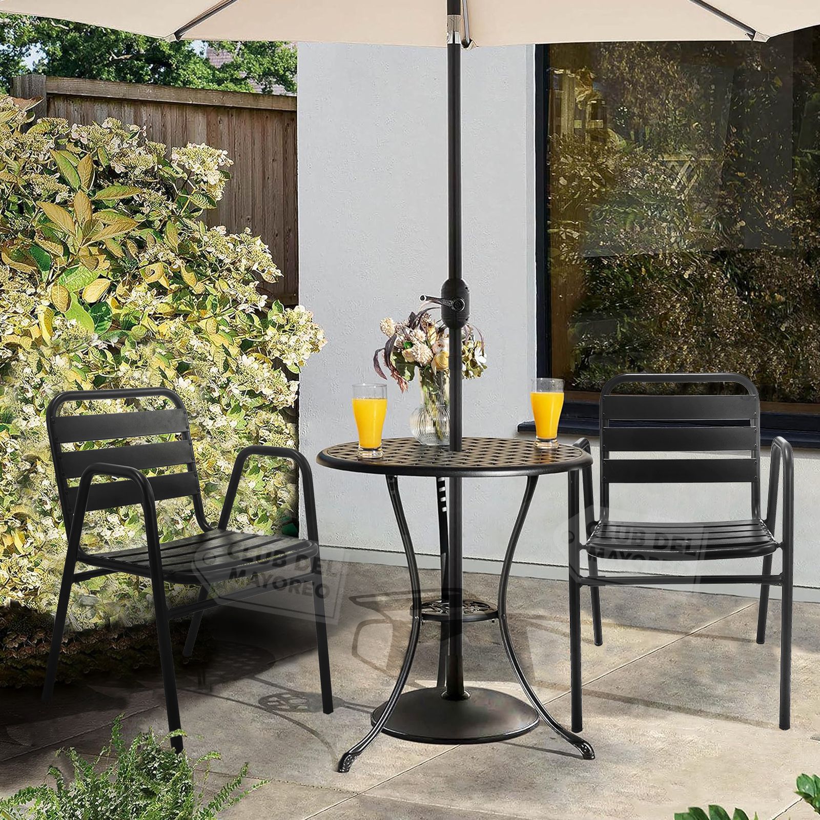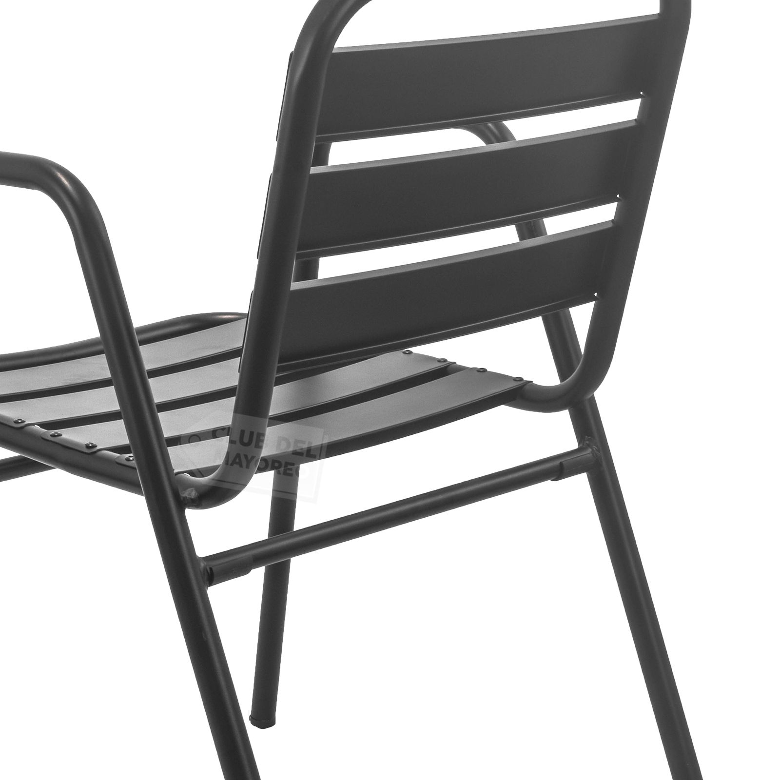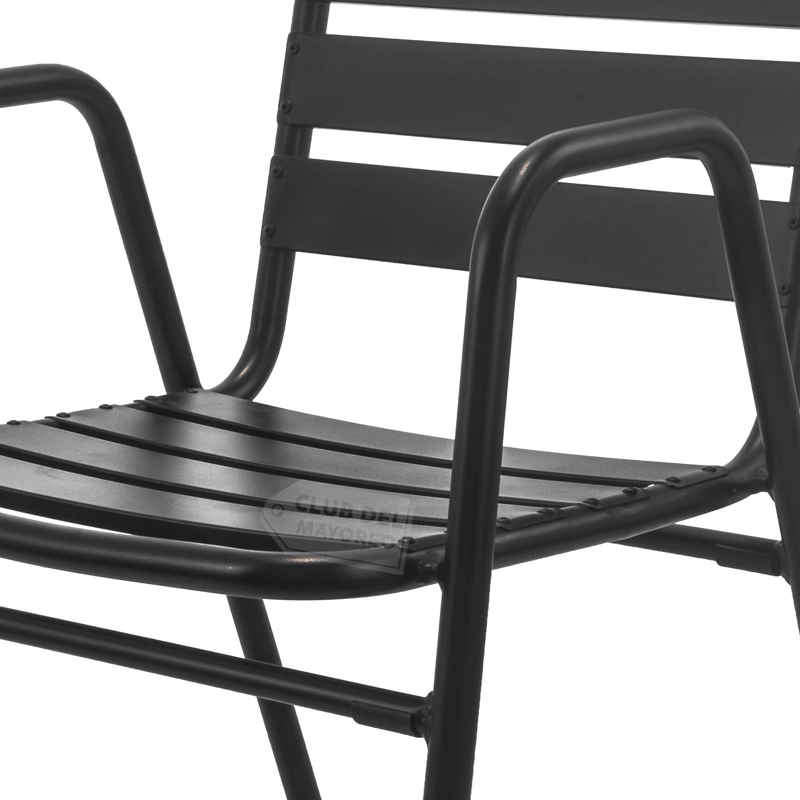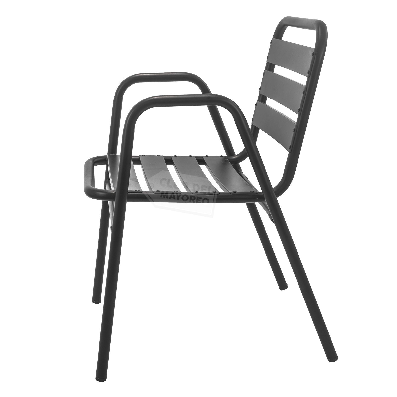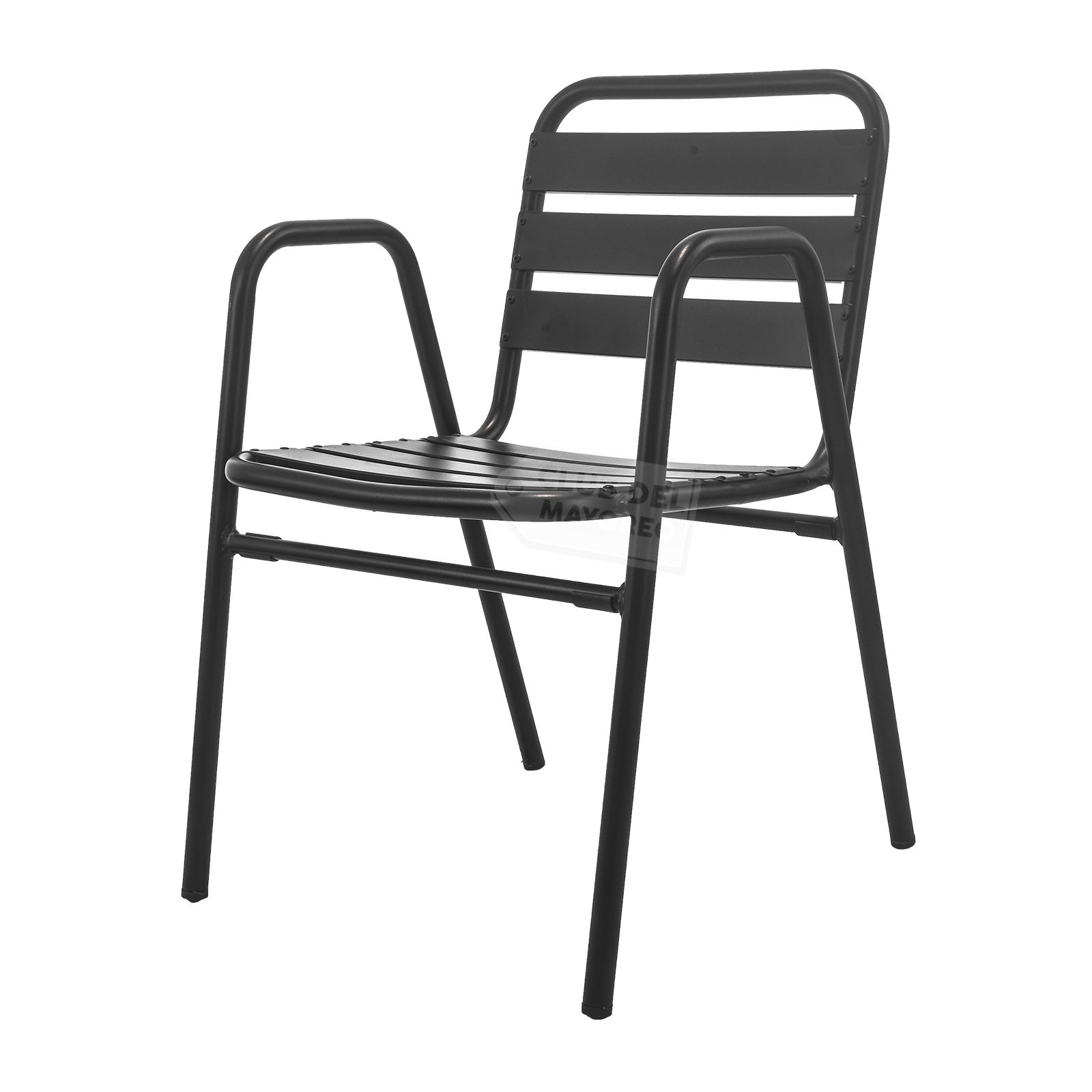 Práctica, funcional y ligera silla ideal para exteriores, cafeterías, restaurantes, fondas, jardín, patio, etc. Fabricadas en aluminio para convertirlas en sillas ligeras para fácil transporte. Estructura pintada en color negro mate y tubo redondo con laminas horizontales para mayor confort. Se pueden apilar para ahorrar espacio en el almacenaje. La silla puede soportar un peso de 130 Kgs.