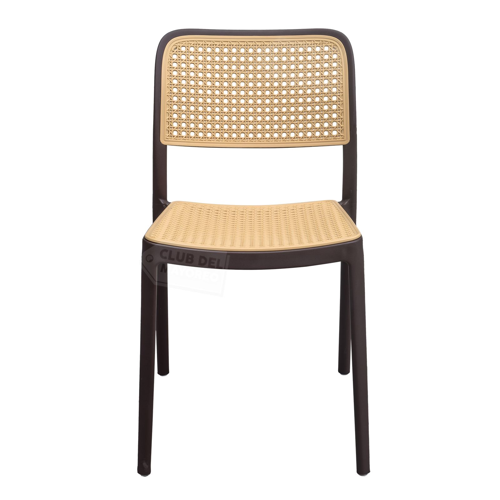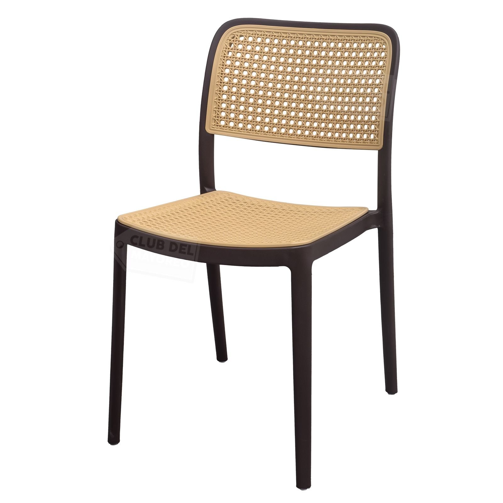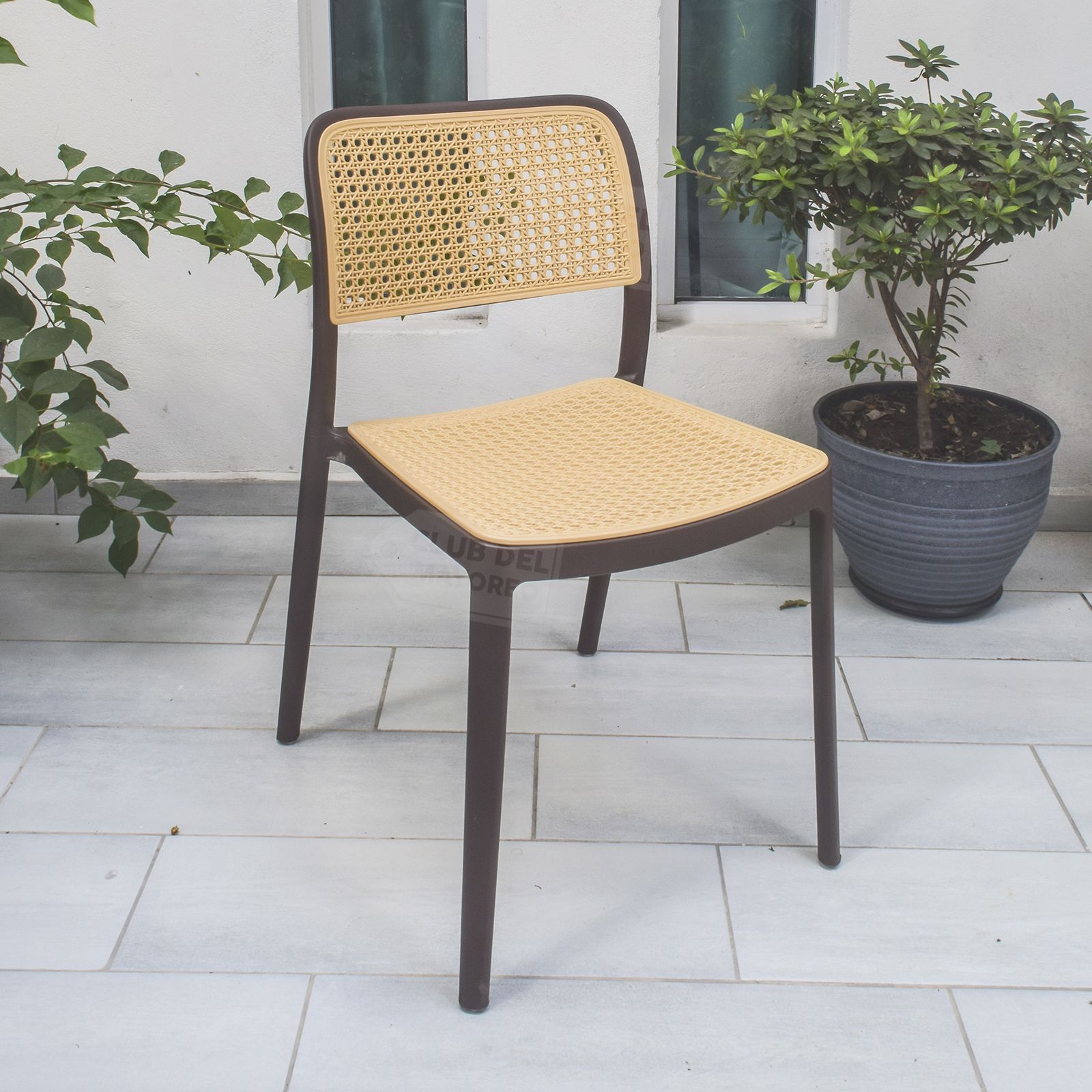 Silla Sencilla Ratan Plástico Reforzado Cafe