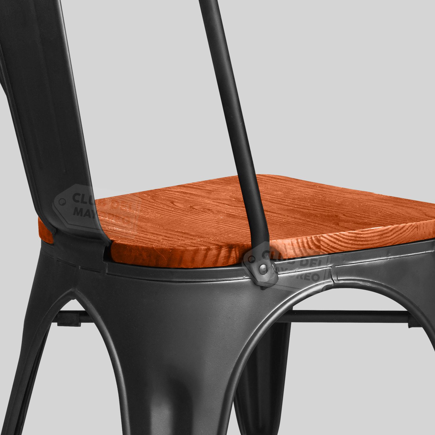 Silla Tolix Metalica Apilable Negro Mate y Madera en Asiento marca Calandria
