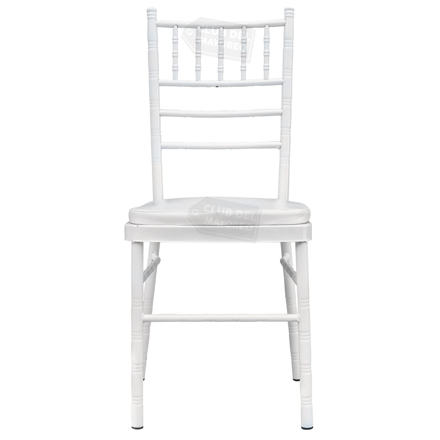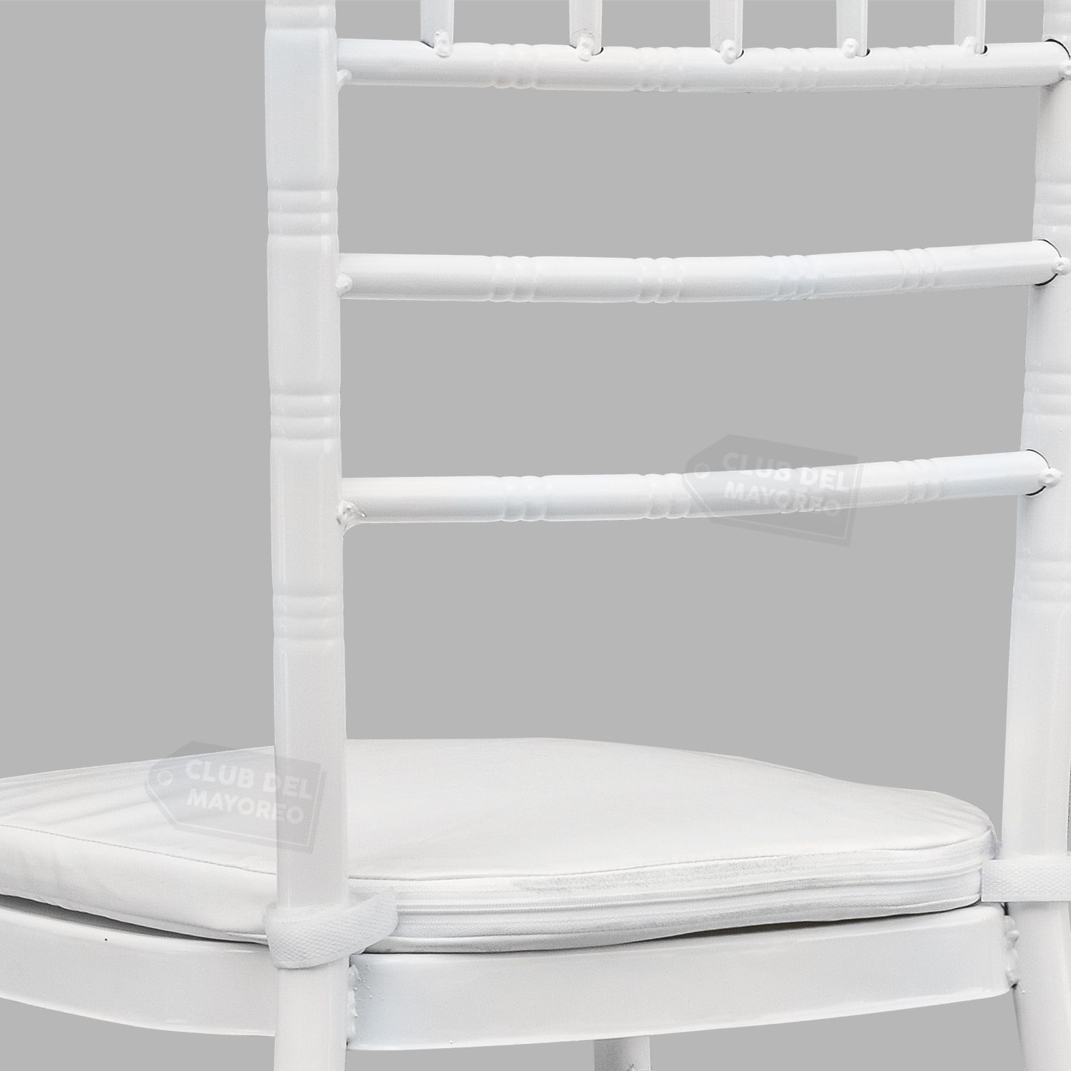 Silla metálica ideal para eventos sociales, banquetes y celebraciones, con un diseño elegante y funcional. Su acabado en color blanco aporta un estilo limpio y sofisticado, perfecto para bodas, reuniones y eventos formales.